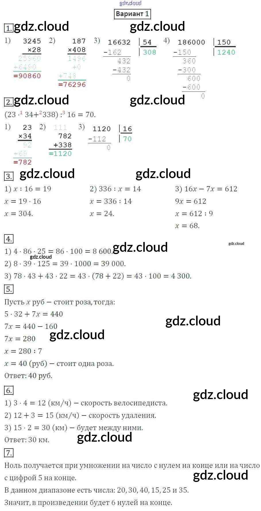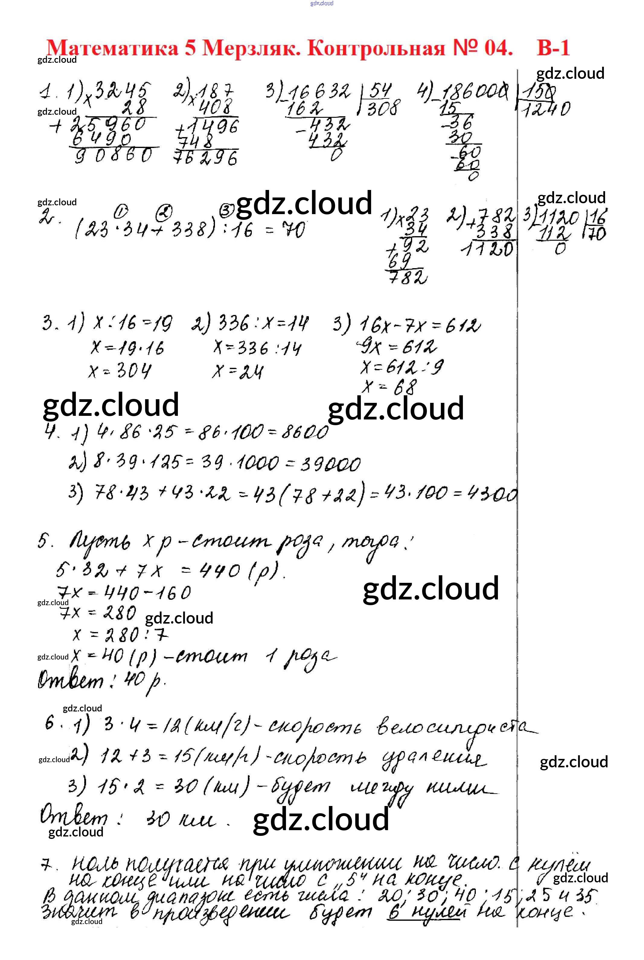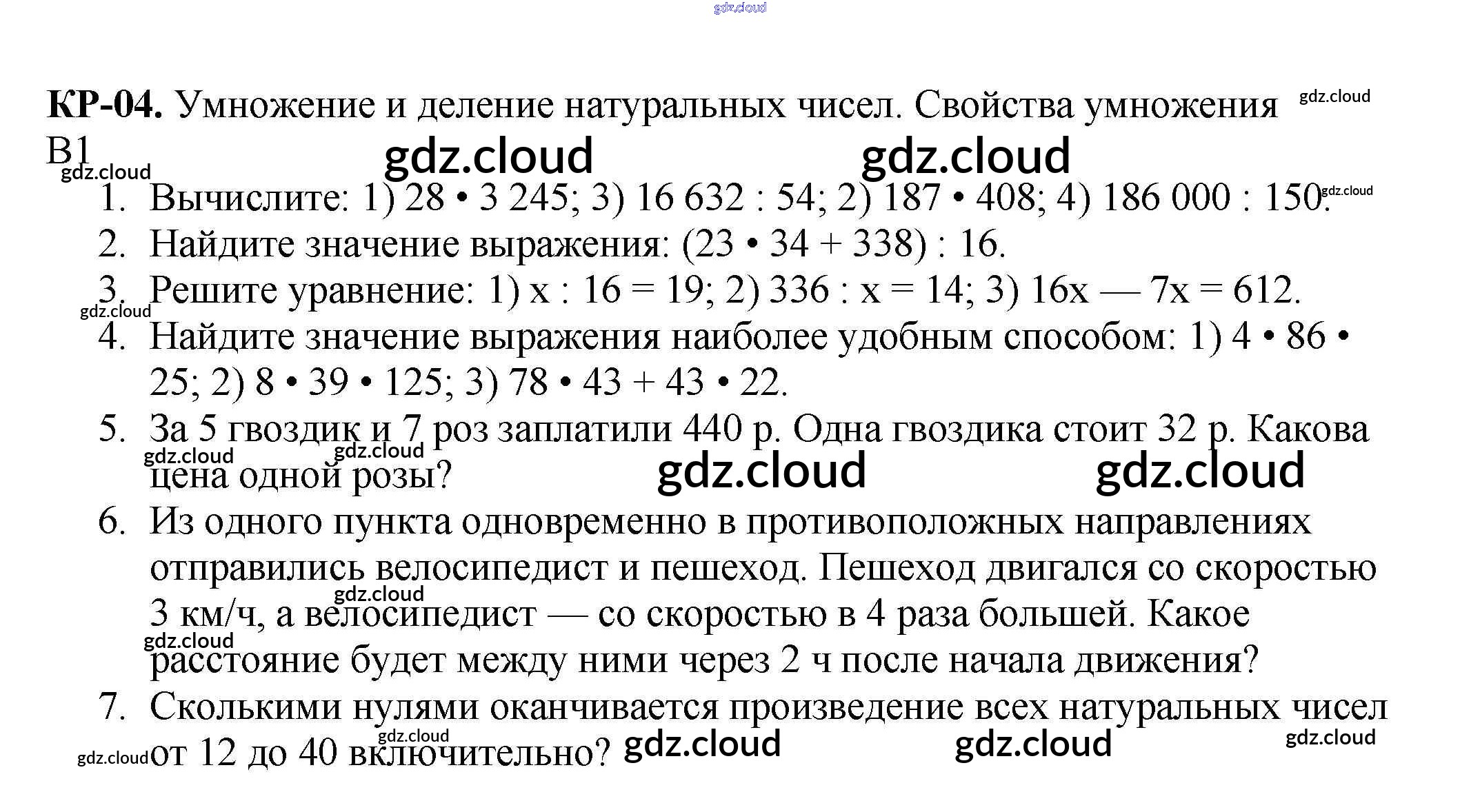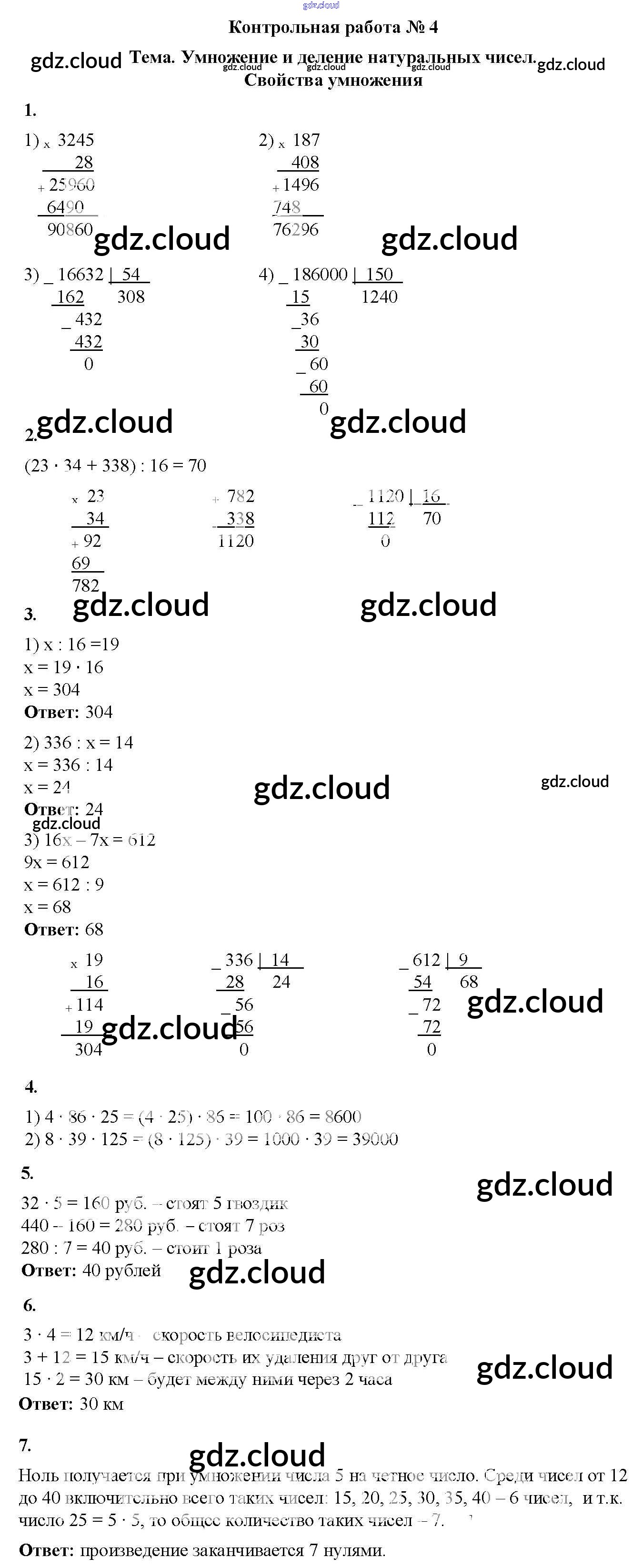 КР №4. Умножение и деление натуральных чисел. Свойства умножения Ответы к контрольным работам по Математике 5 класс Дидактические материалы Мерзляк Алгоритм успеха Вентана-граф