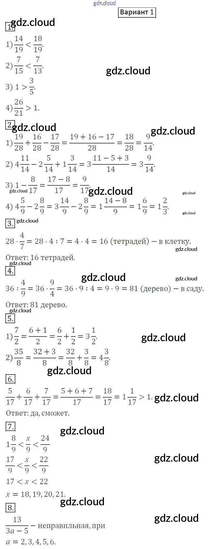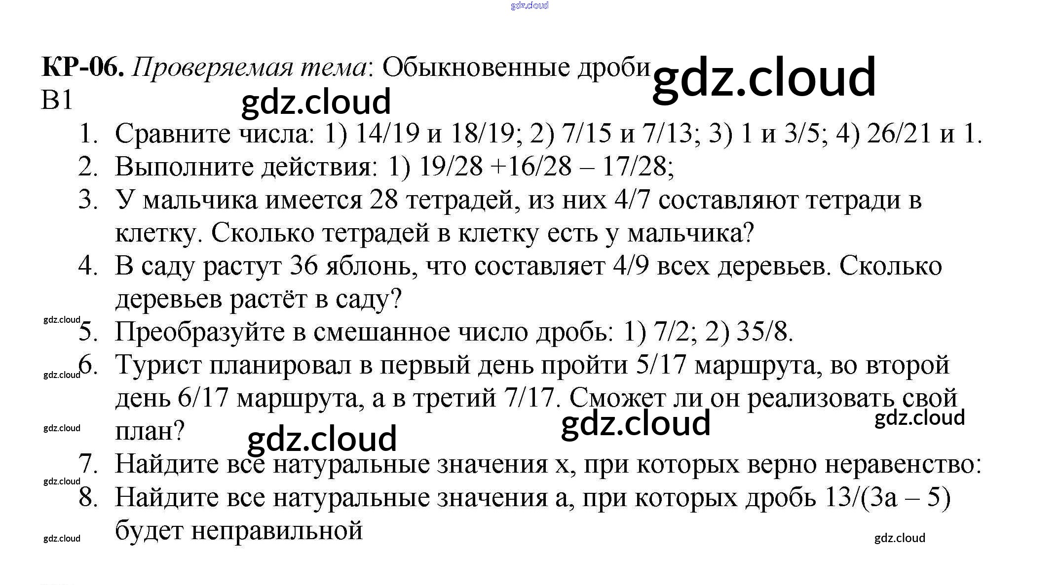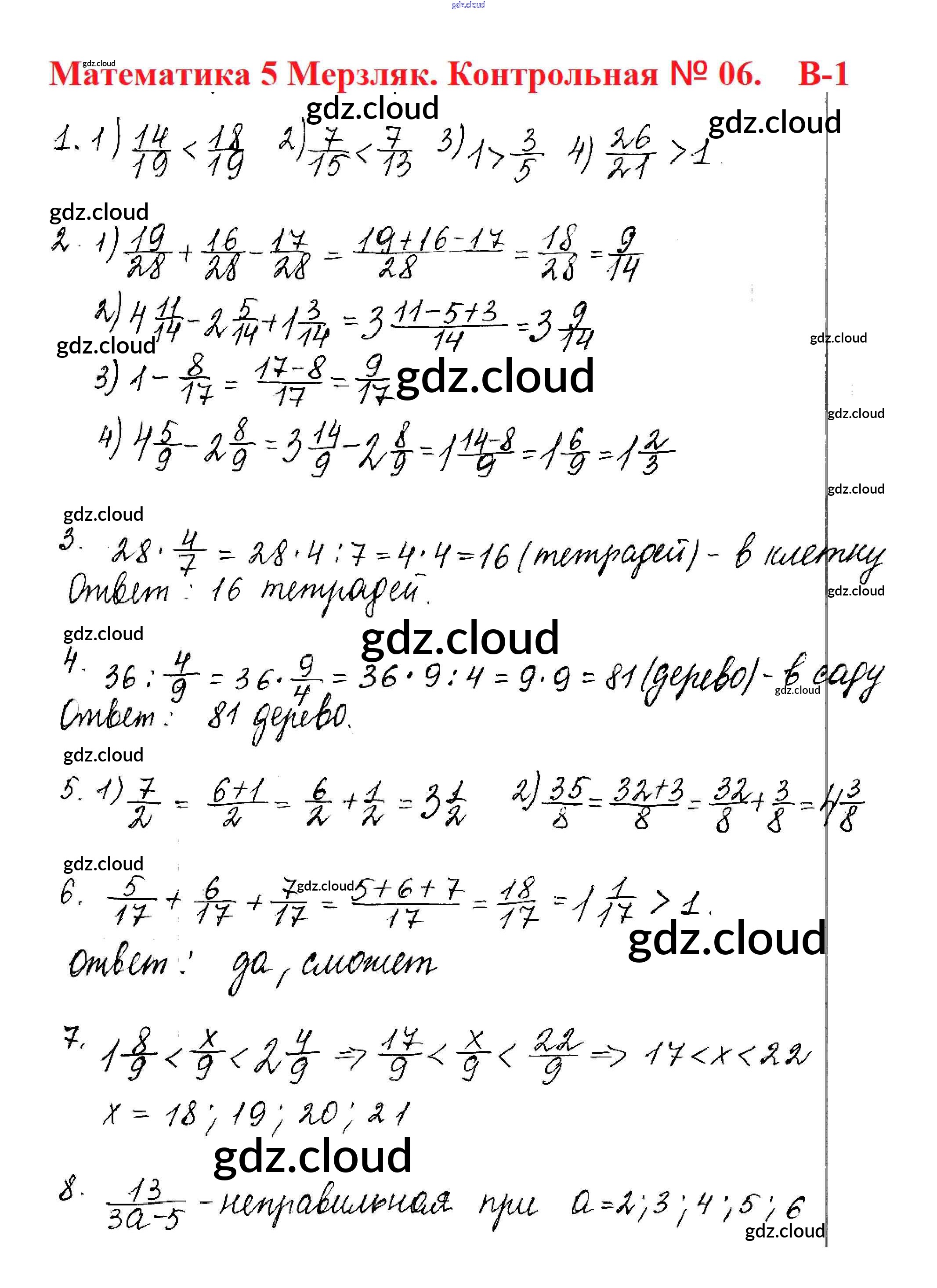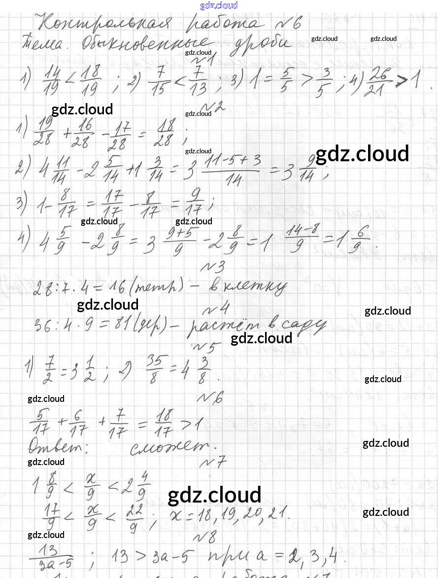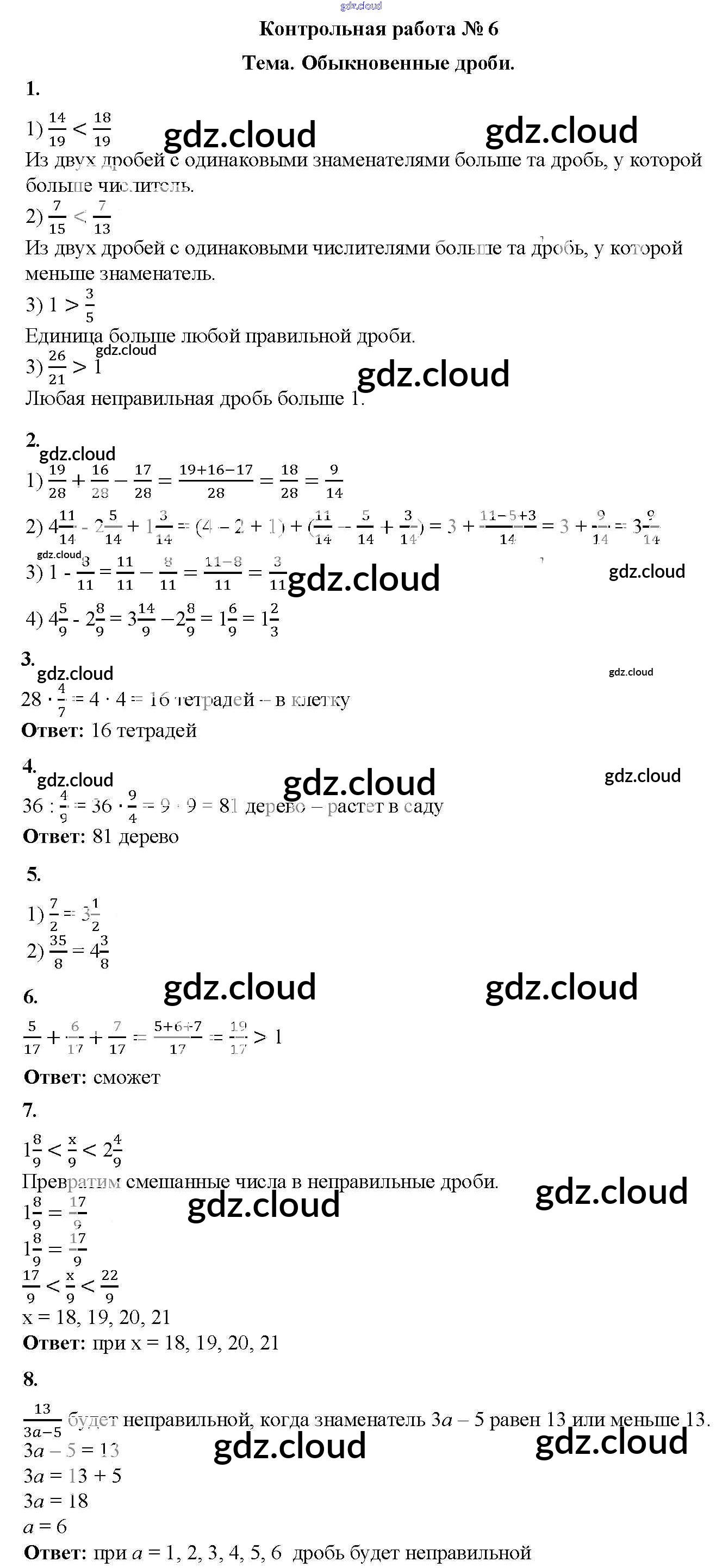КР №6. Обыкновенные дроби Ответы к контрольным работам по Математике 5 класс Дидактические материалы Мерзляк Алгоритм успеха Вентана-граф