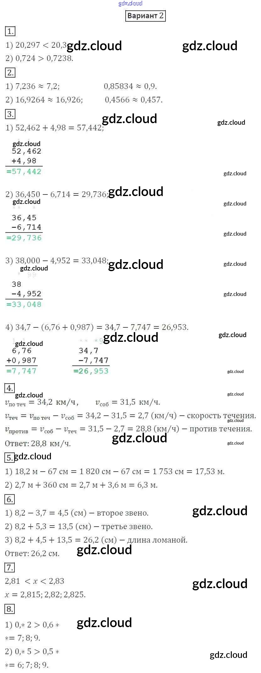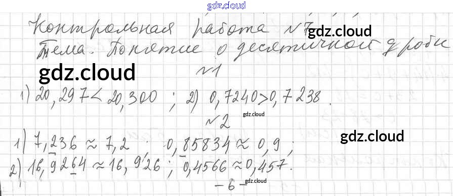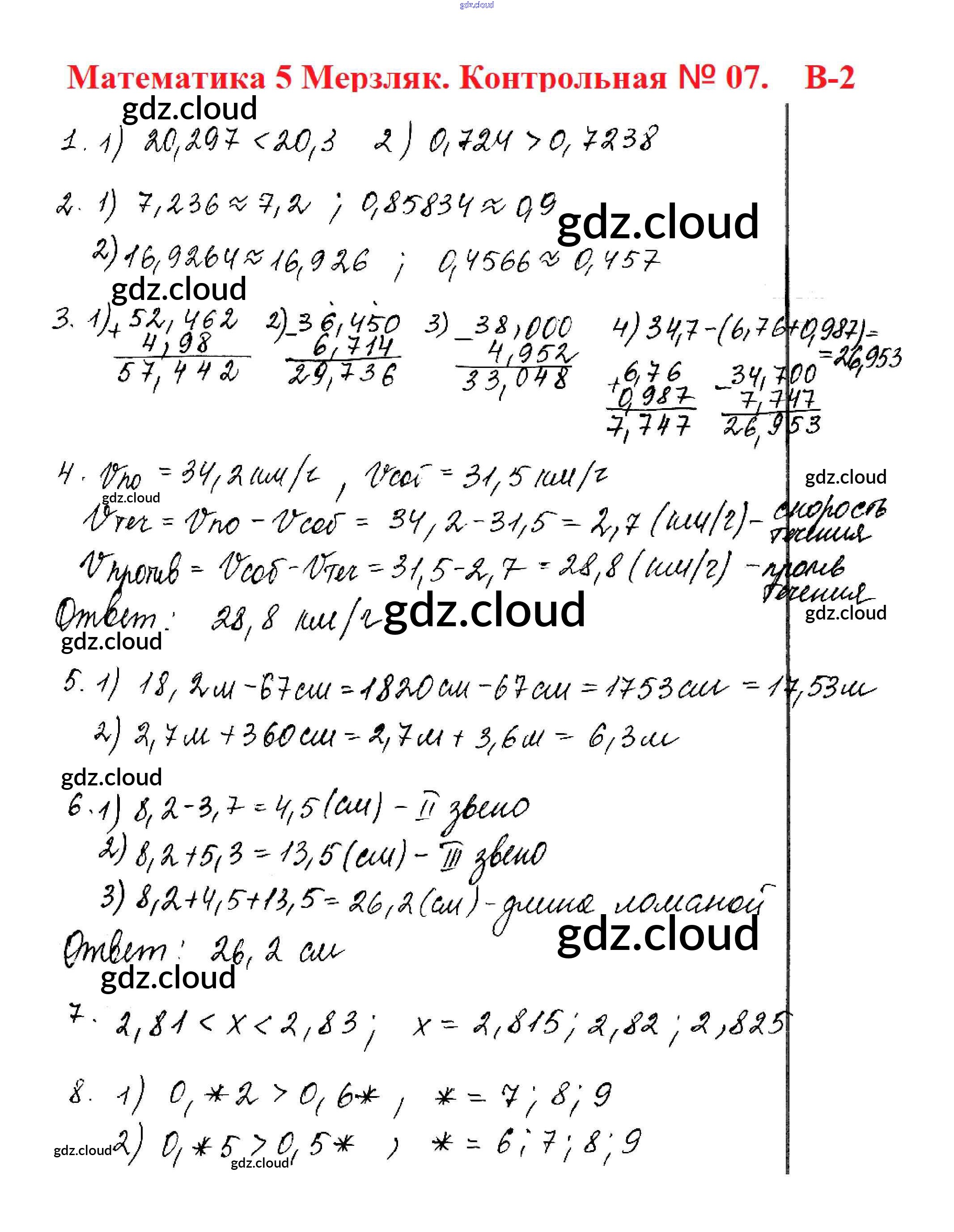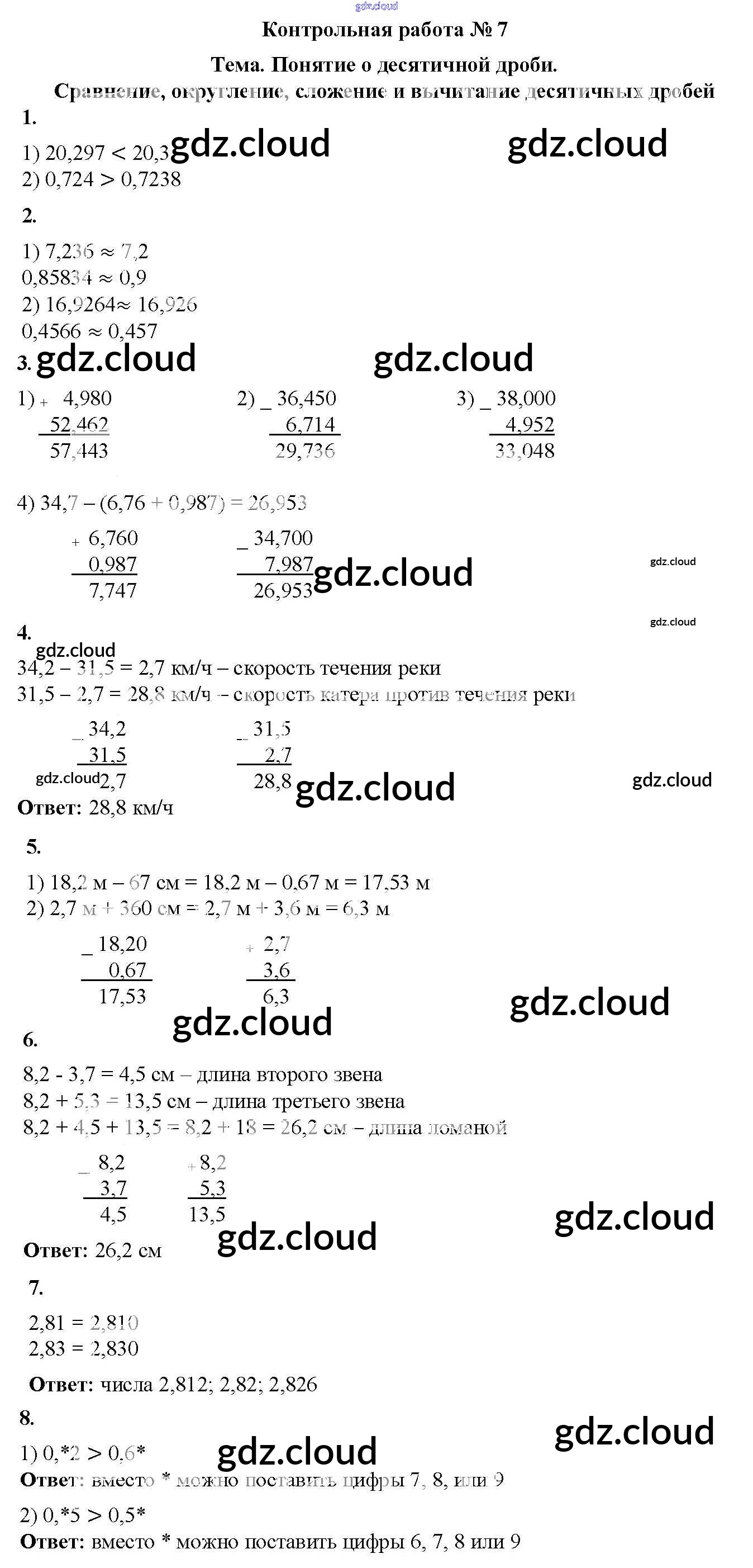 КР №7. Понятие о десятичной дроби. Сравнение, округление, сложение и вычитание Ответы к контрольным работам по Математике 5 класс Дидактические материалы Мерзляк Алгоритм успеха Вентана-граф