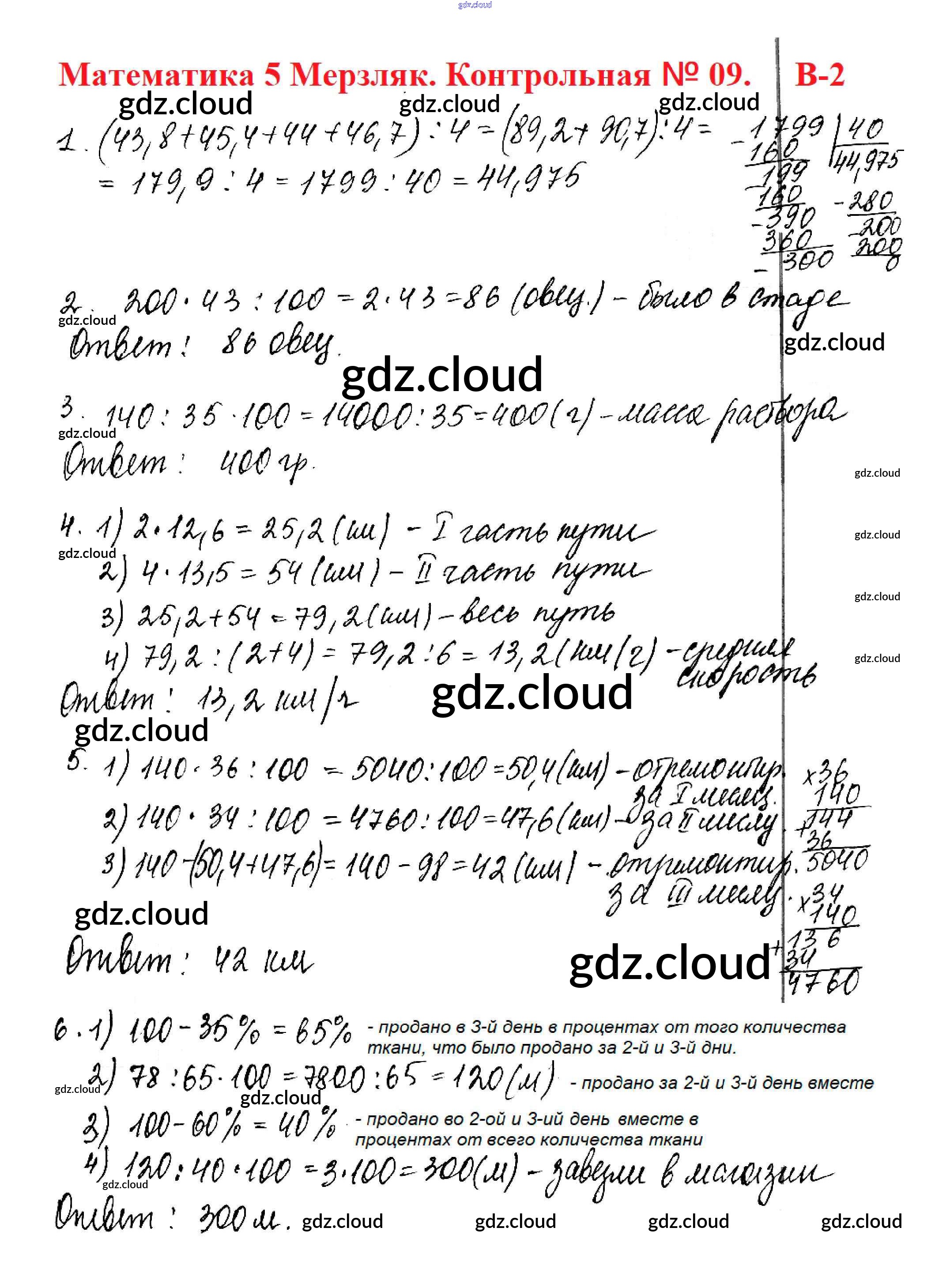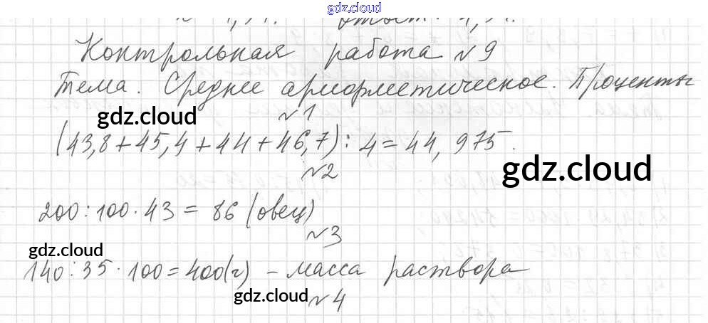 КР №9. Среднее арифметическое. Проценты Ответы к контрольным работам по Математике 5 класс Дидактические материалы Мерзляк Алгоритм успеха Вентана-граф