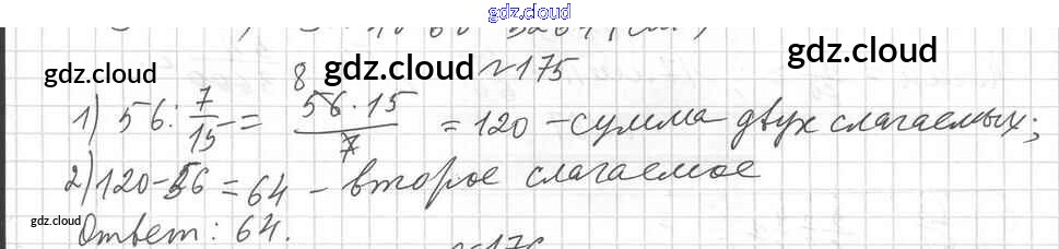 Ответ на задание 175 Дидактические материалы Математика за 5 (пятый) класс Мерзляк, Полонский, Якир, Рябинович Алгоритм успеха 2017
