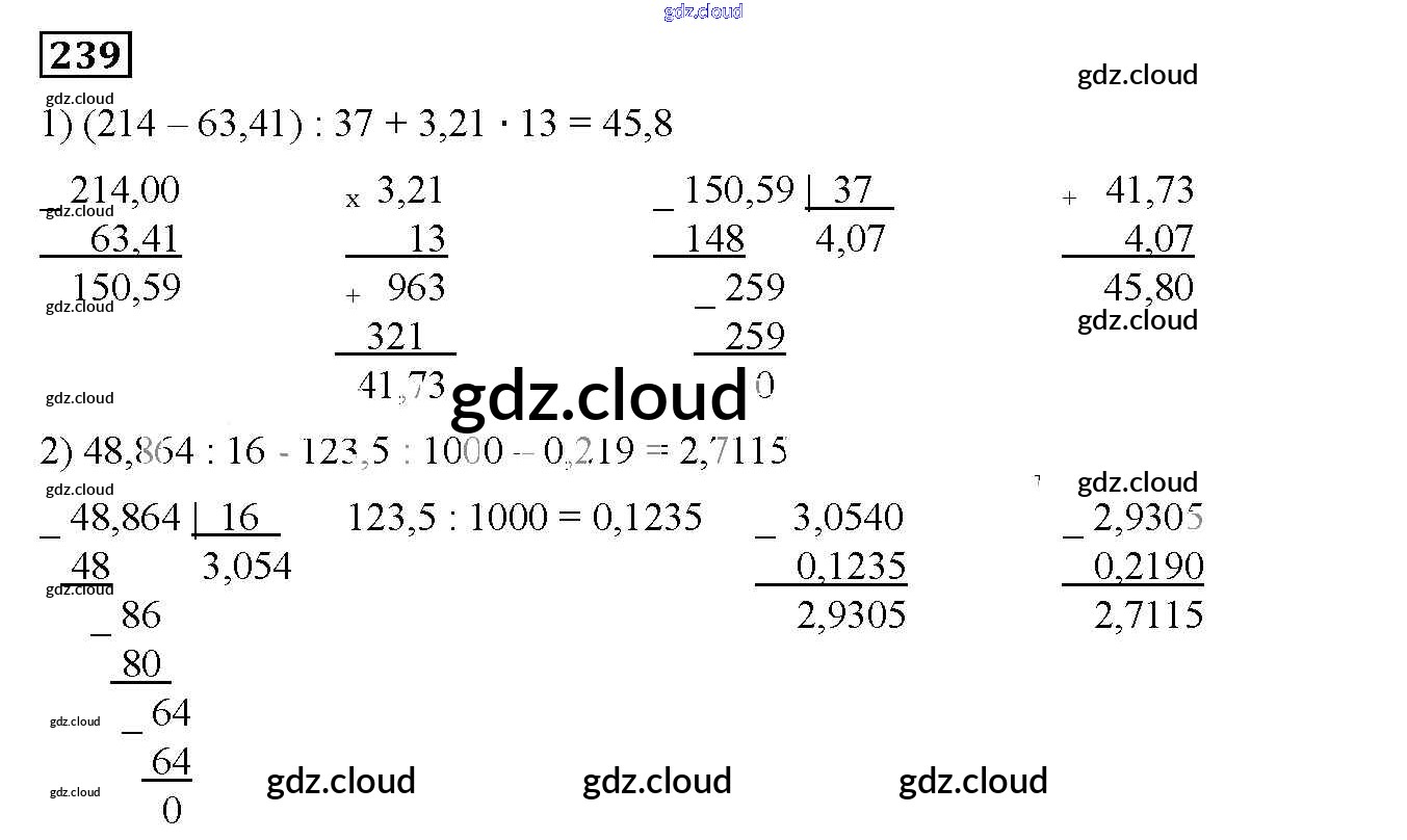Ответ на задание 239 Дидактические материалы Математика за 5 (пятый) класс Мерзляк, Полонский, Якир, Рябинович Алгоритм успеха 2017