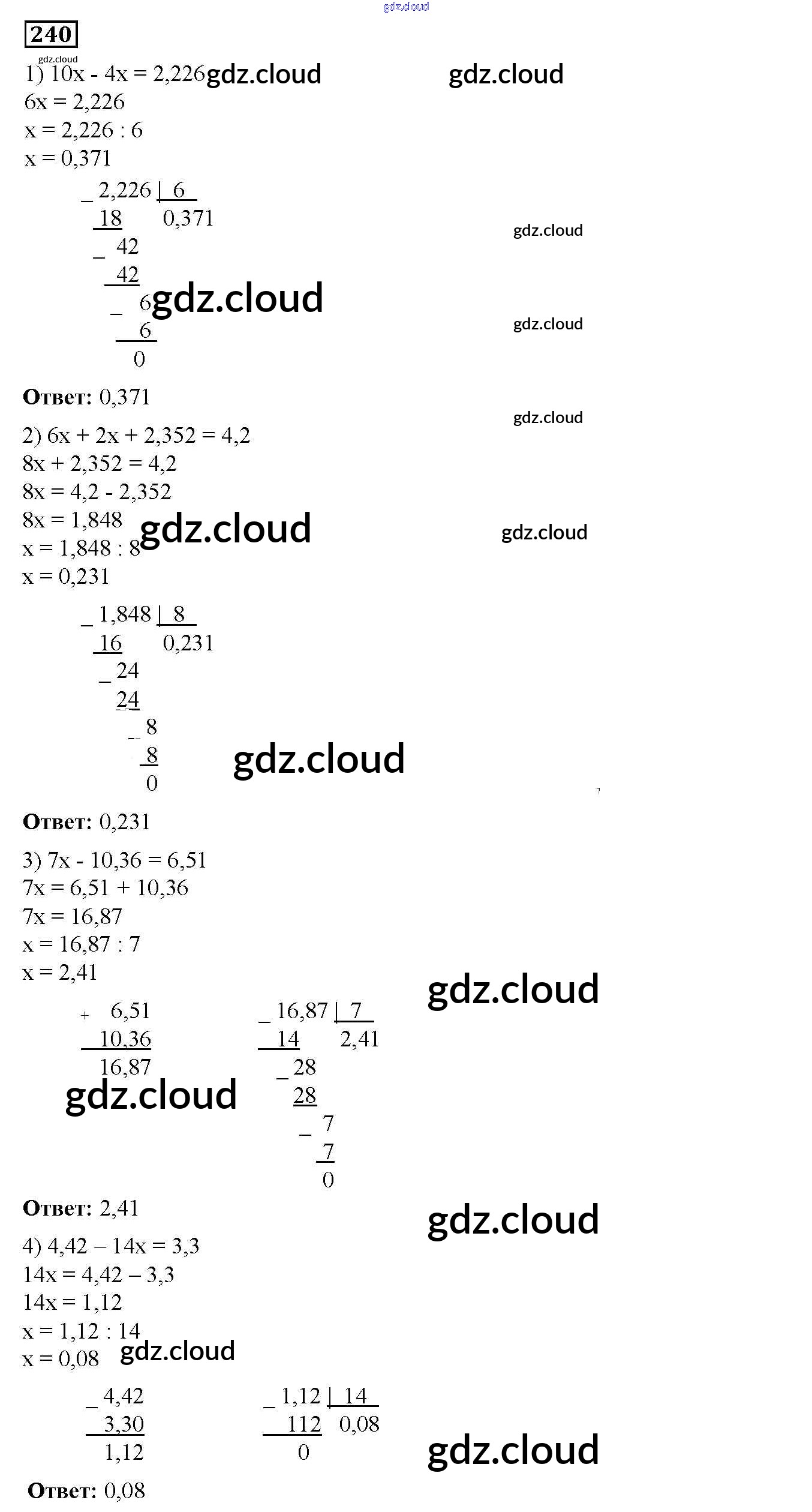 Ответ на задание 240 Дидактические материалы Математика за 5 (пятый) класс Мерзляк, Полонский, Якир, Рябинович Алгоритм успеха 2017