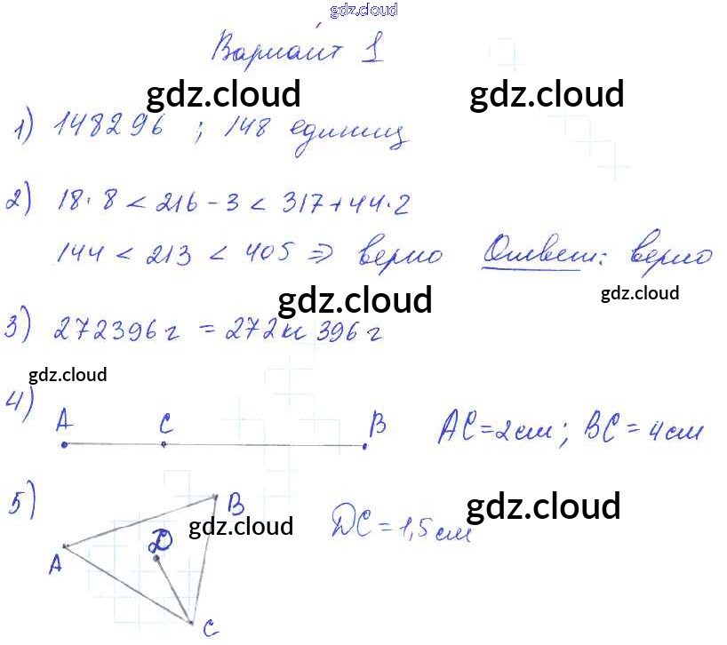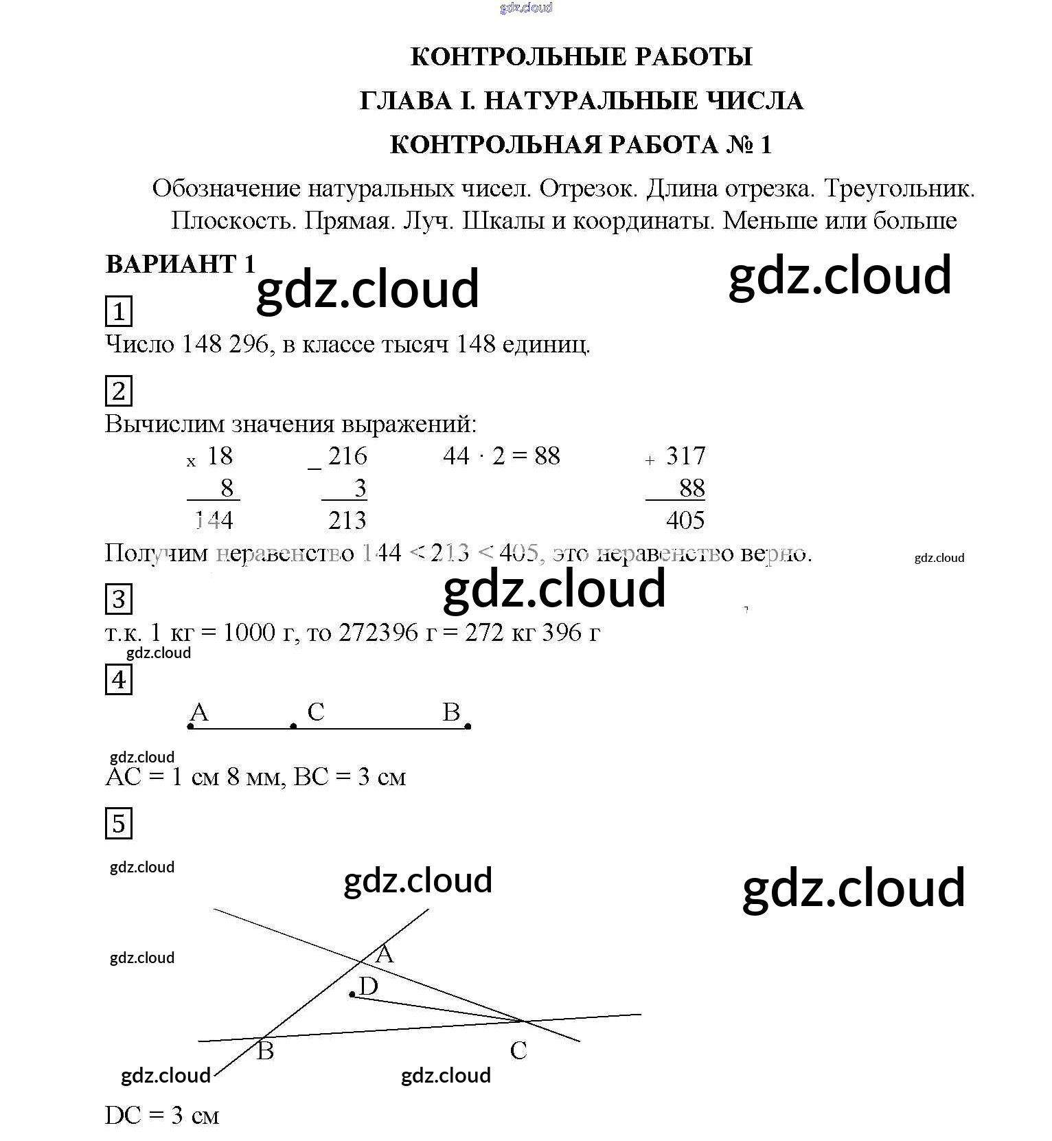КР №1. Обозначение натуральных чисел. Отрезок. Длина отрезка. Треугольник Ответы к Контрольным работам по Математике 5 класс Дидактические материалы Попов УМК Экзамен