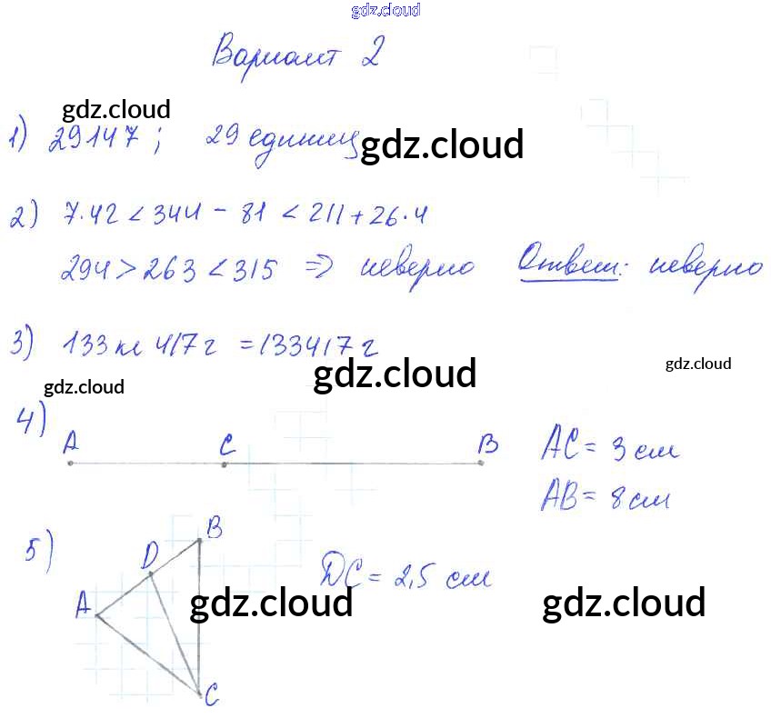 КР №1. Обозначение натуральных чисел. Отрезок. Длина отрезка. Треугольник Ответы к Контрольным работам по Математике 5 класс Дидактические материалы Попов УМК Экзамен