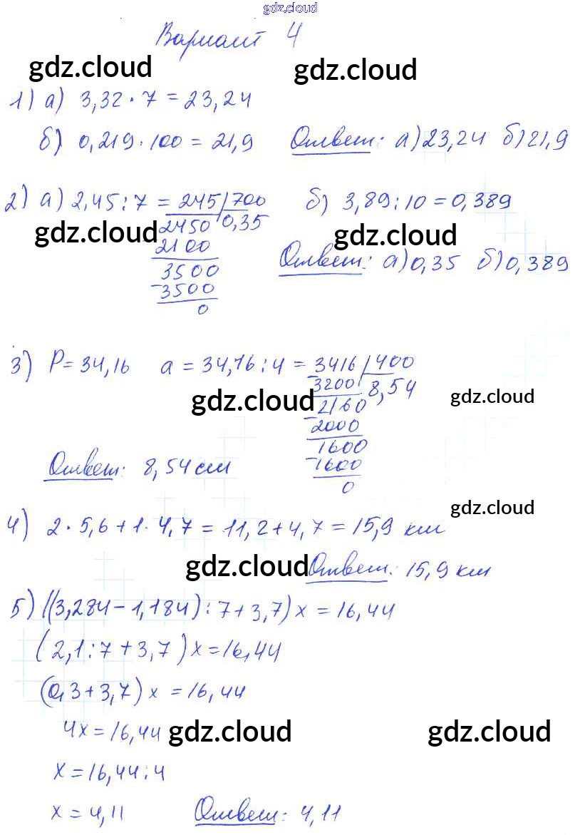 КР №10. Умножение и деление десятичных дробей на натуральные числа Ответы к Контрольным работам по Математике 5 класс Дидактические материалы Попов УМК Экзамен