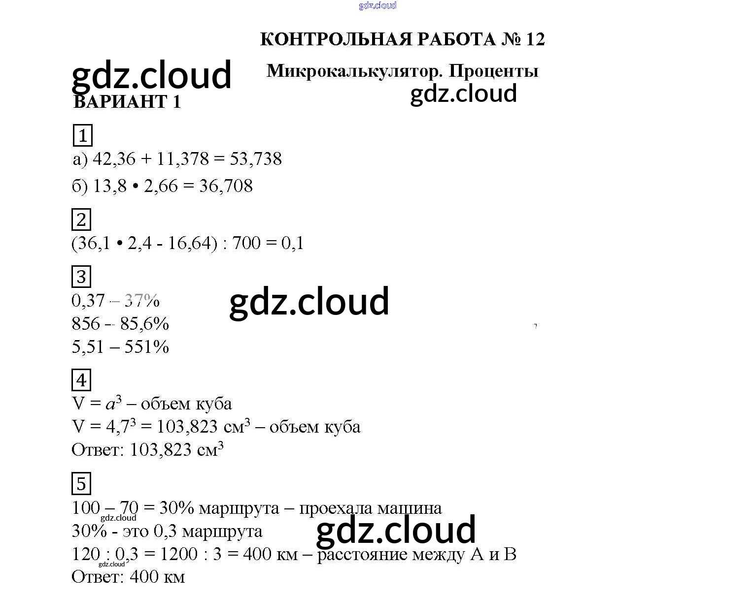 КР №12. Микрокалькулятор. Проценты Ответы к Контрольным работам по Математике 5 класс Дидактические материалы Попов УМК Экзамен