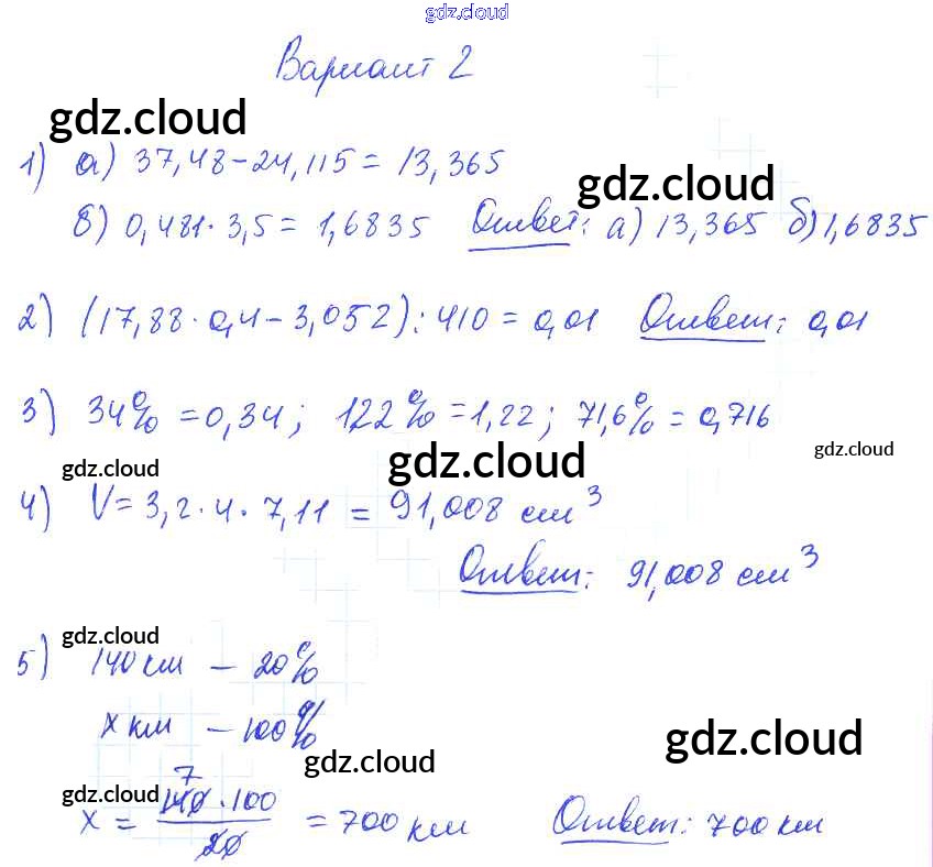 Ответ на задание вариант №2 Дидактические материалы Математика за 5 (пятый) класс Попов УМК 2017
