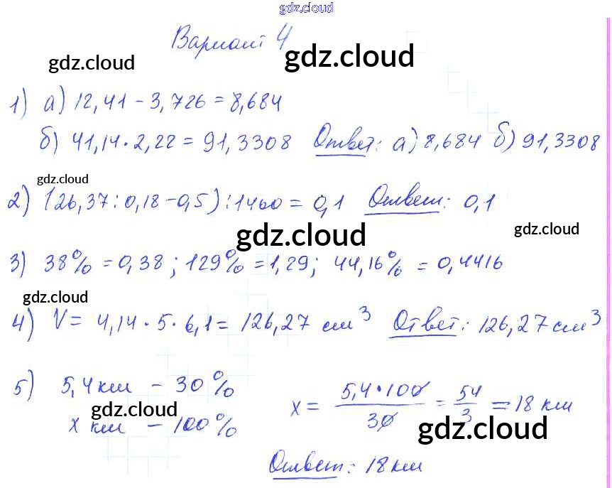 КР №12. Микрокалькулятор. Проценты Ответы к Контрольным работам по Математике 5 класс Дидактические материалы Попов УМК Экзамен