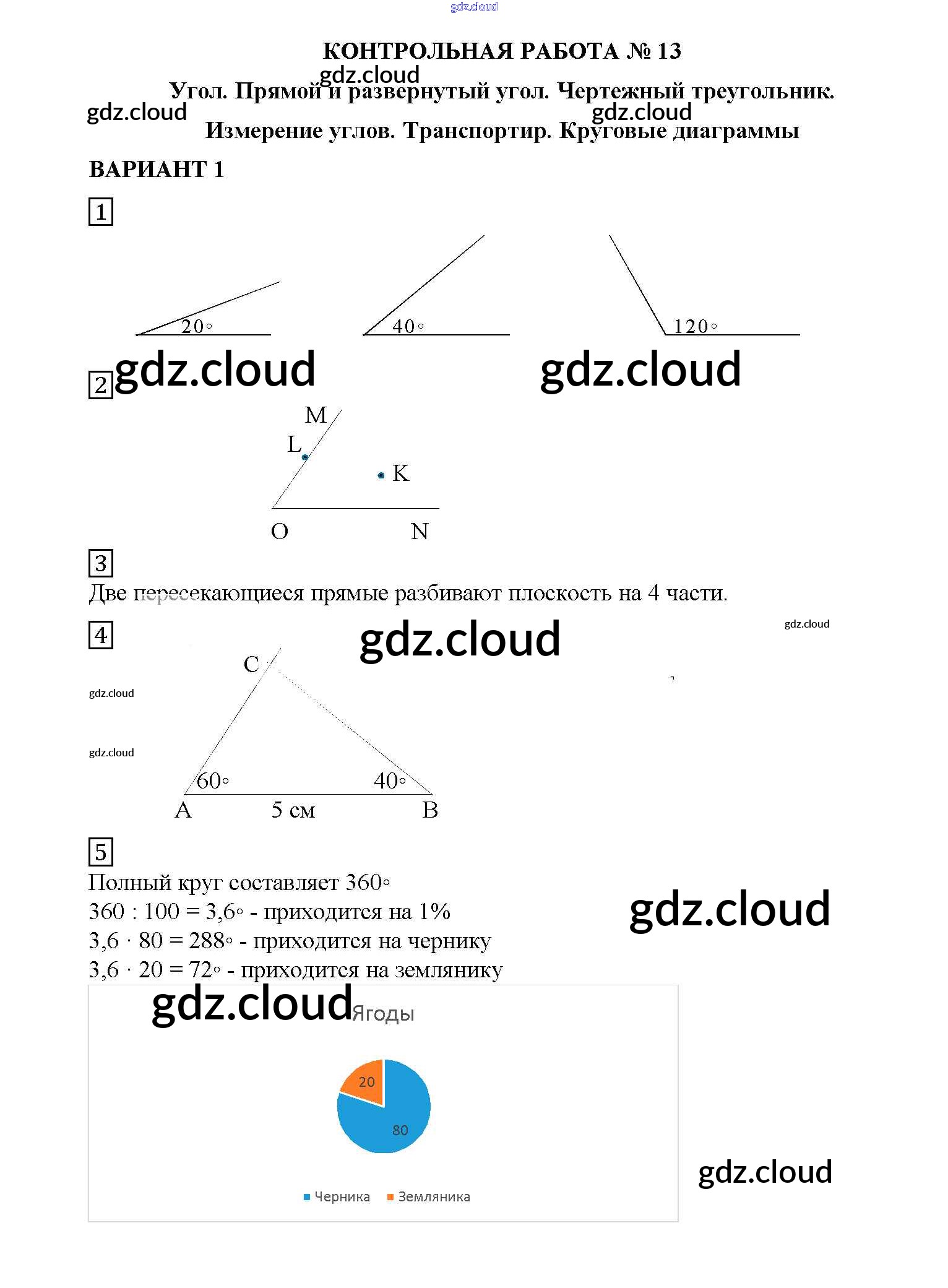 КР №13. Угол. Чертежный треугольник. Транспортир Ответы к Контрольным работам по Математике 5 класс Дидактические материалы Попов УМК Экзамен