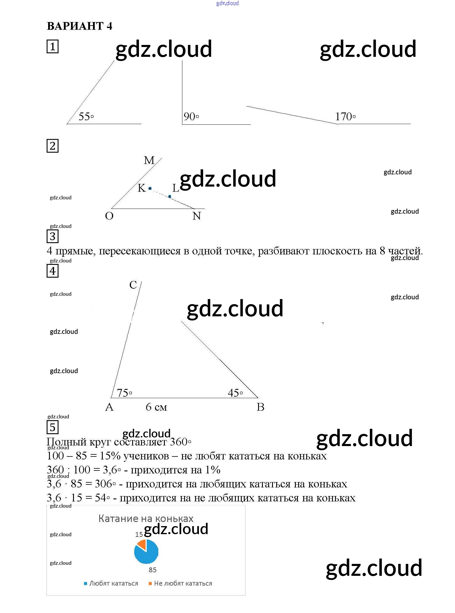КР №13. Угол. Чертежный треугольник. Транспортир Ответы к Контрольным работам по Математике 5 класс Дидактические материалы Попов УМК Экзамен