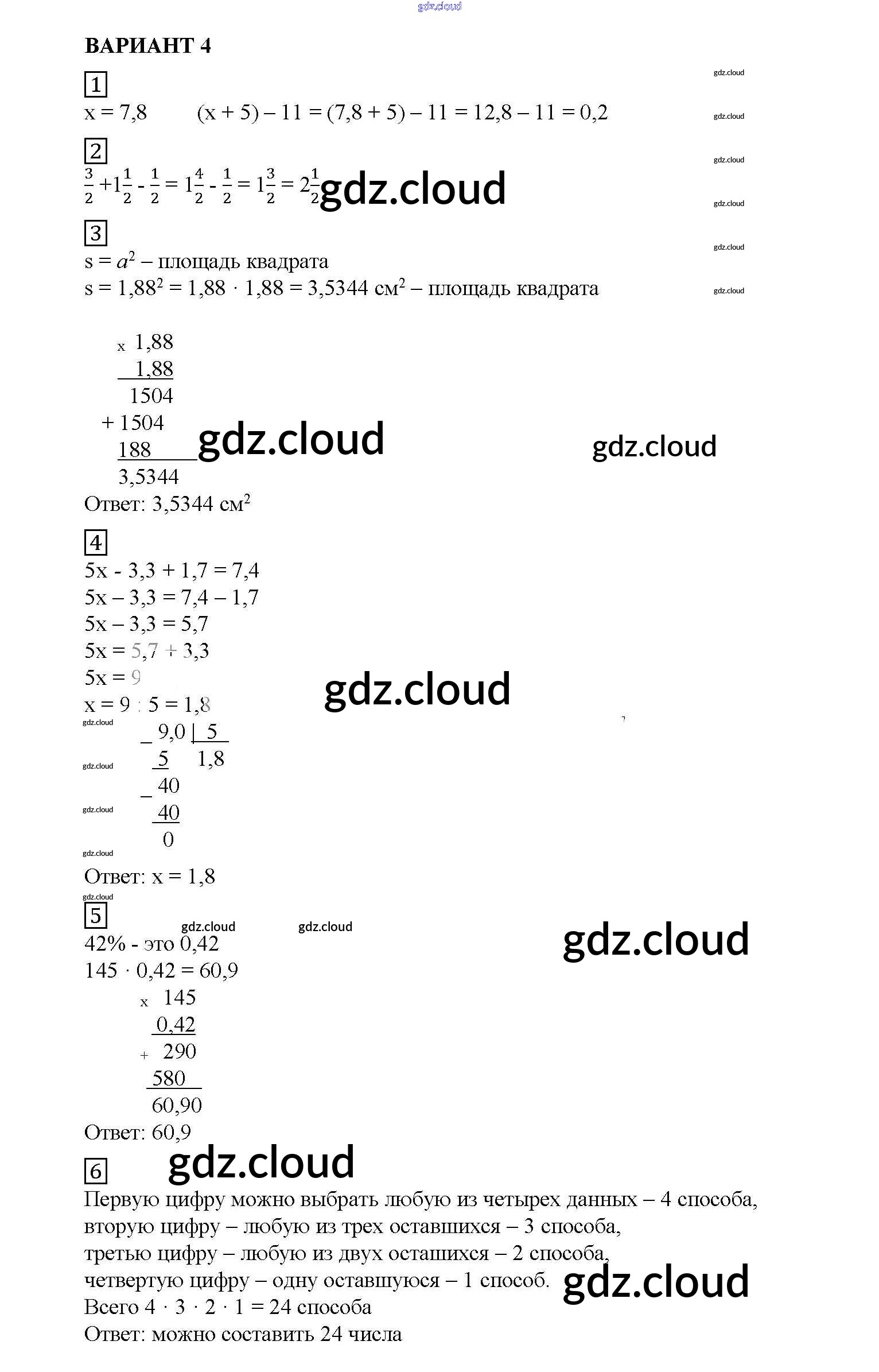 Ответ на задание вариант №4 Дидактические материалы Математика за 5 (пятый) класс Попов УМК 2017