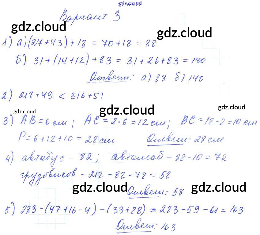 КР №2. Сложение натуральных чисел и его свойства. Вычитание Ответы к Контрольным работам по Математике 5 класс Дидактические материалы Попов УМК Экзамен