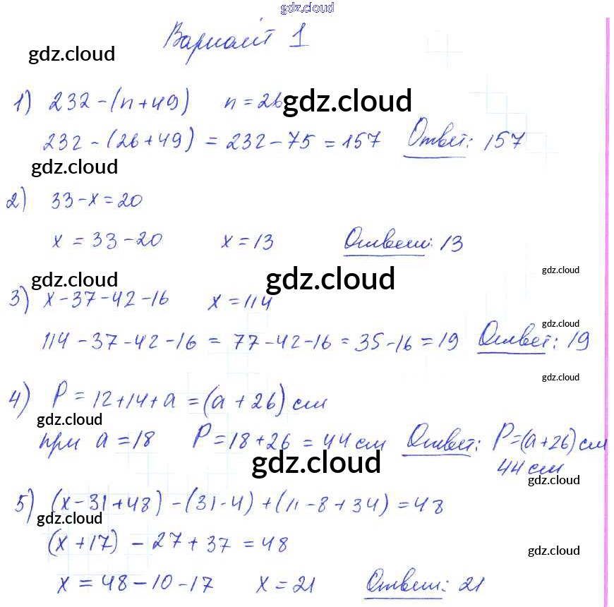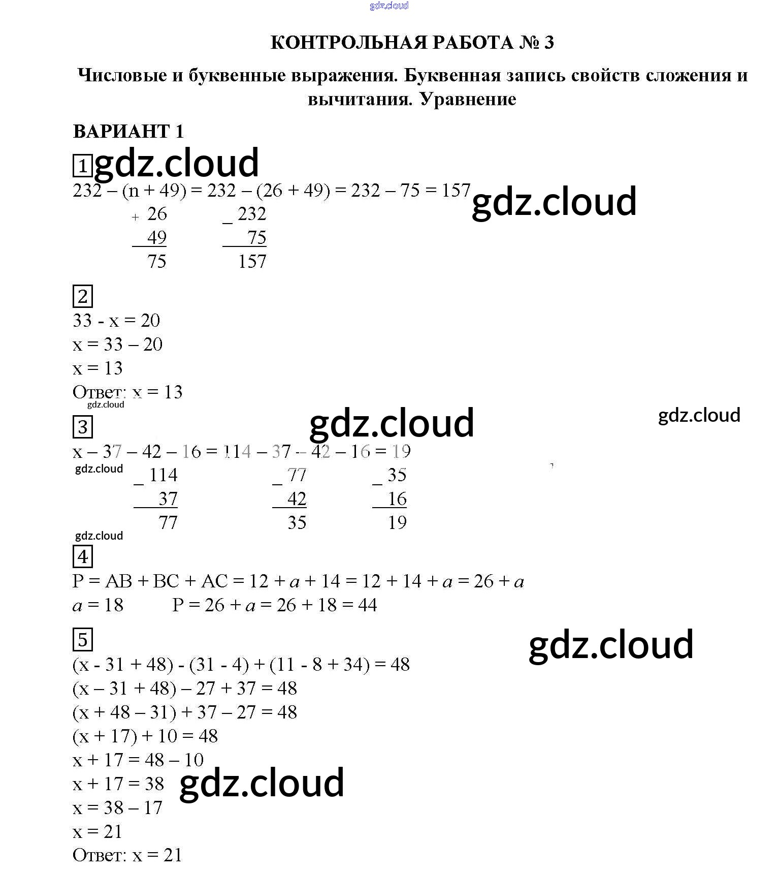 КР №3. Числовые и буквенные выражения. Уравнение Ответы к Контрольным работам по Математике 5 класс Дидактические материалы Попов УМК Экзамен