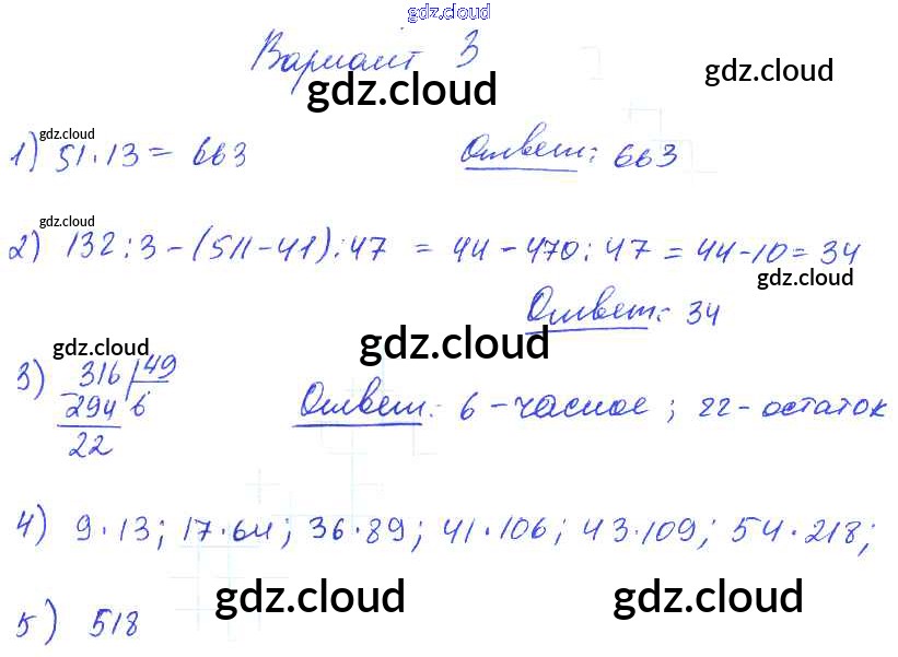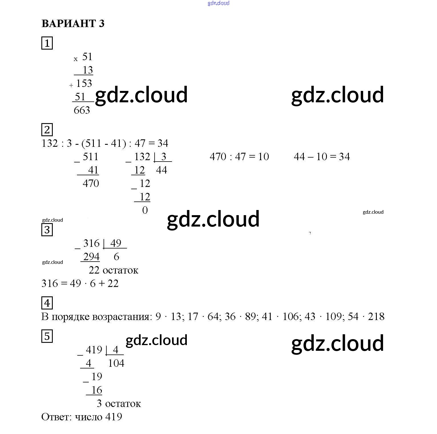 КР №4. Умножение натуральных чисел и его свойства. Деление. Деление с остатком Ответы к Контрольным работам по Математике 5 класс Дидактические материалы Попов УМК Экзамен