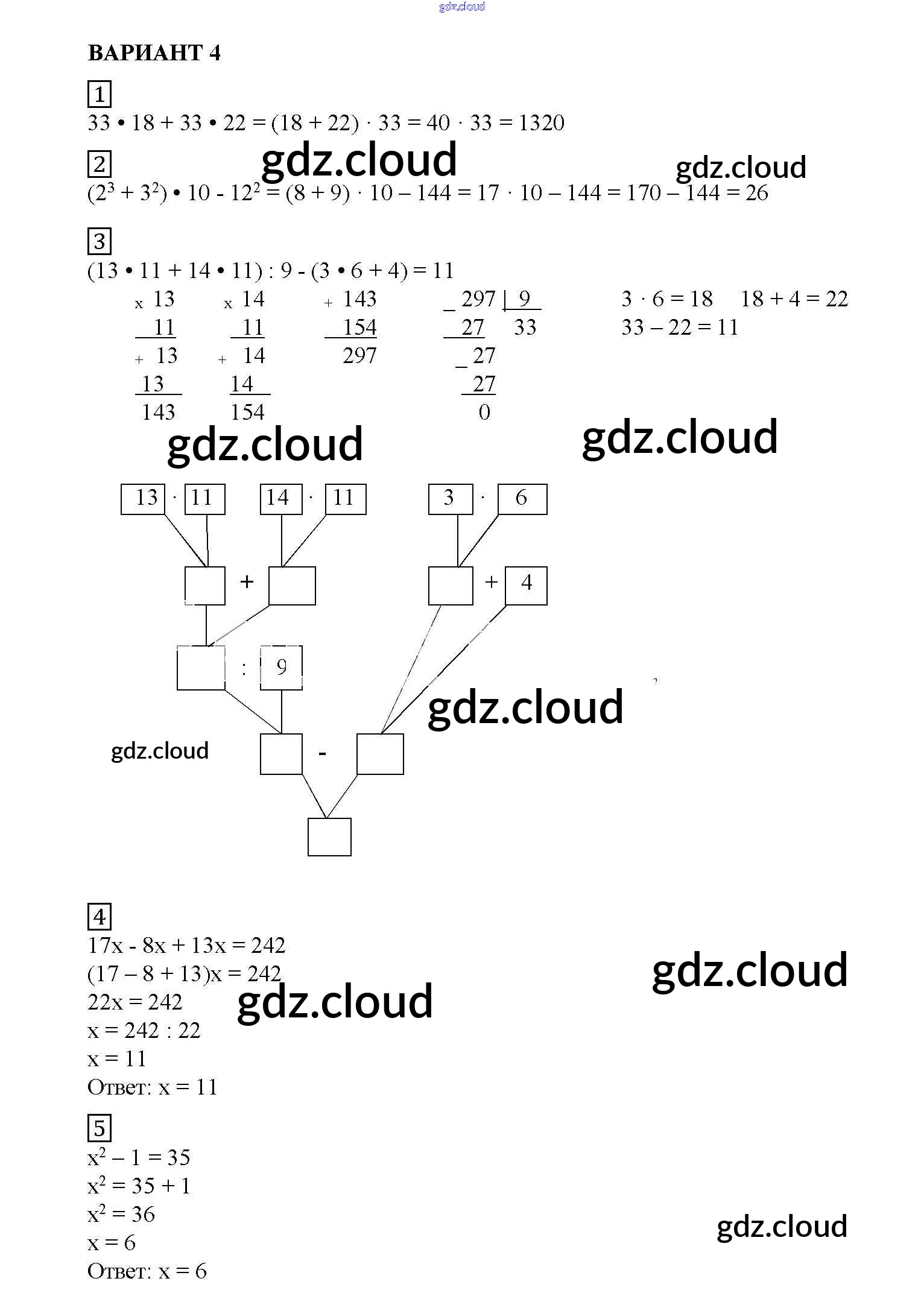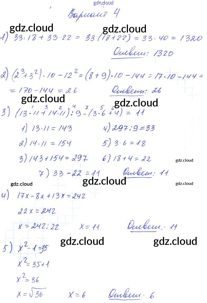 КР №5. Упрощение выражений. Порядок выполнения действий. Квадрат и куб числа Ответы к Контрольным работам по Математике 5 класс Дидактические материалы Попов УМК Экзамен