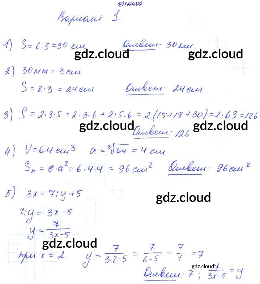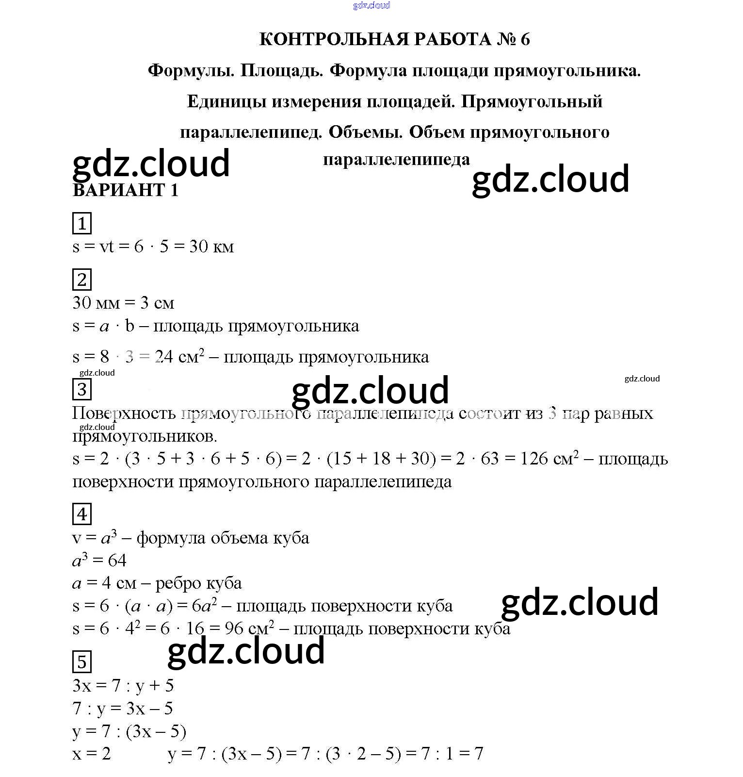 КР №6. Формулы. Площадь. Формула площади прямоугольника Ответы к Контрольным работам по Математике 5 класс Дидактические материалы Попов УМК Экзамен