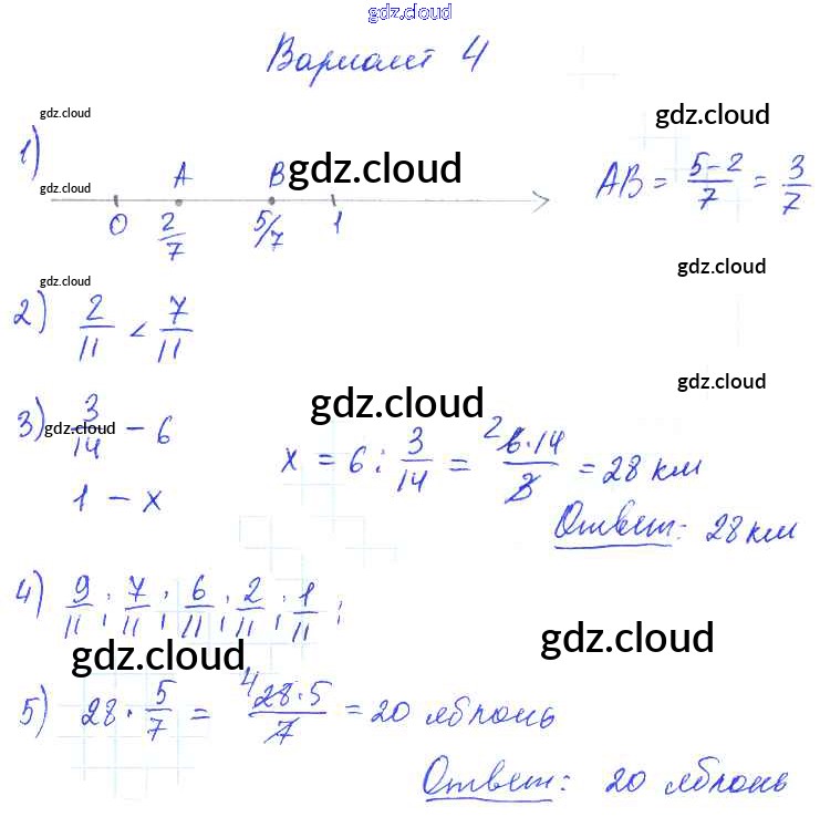КР №7. Окружность и круг. Доли. Обыкновенные дроби. Сравнение дробей Ответы к Контрольным работам по Математике 5 класс Дидактические материалы Попов УМК Экзамен