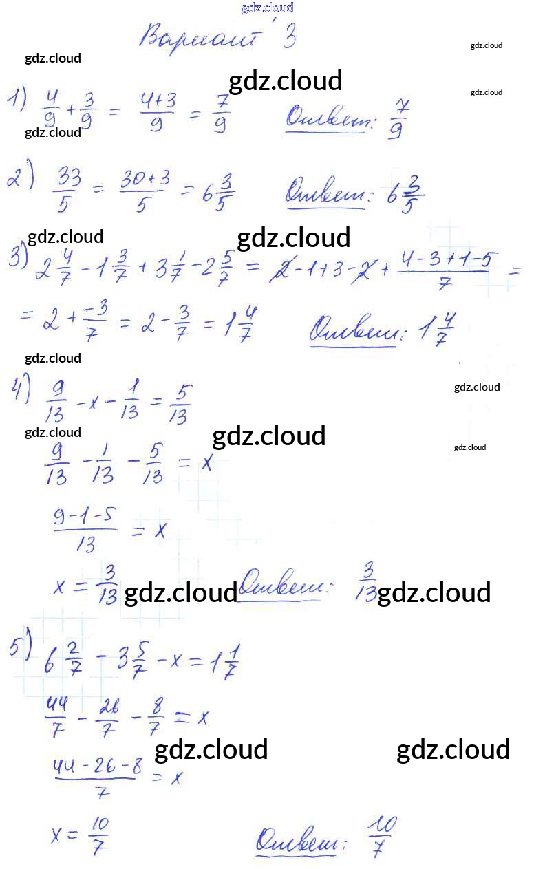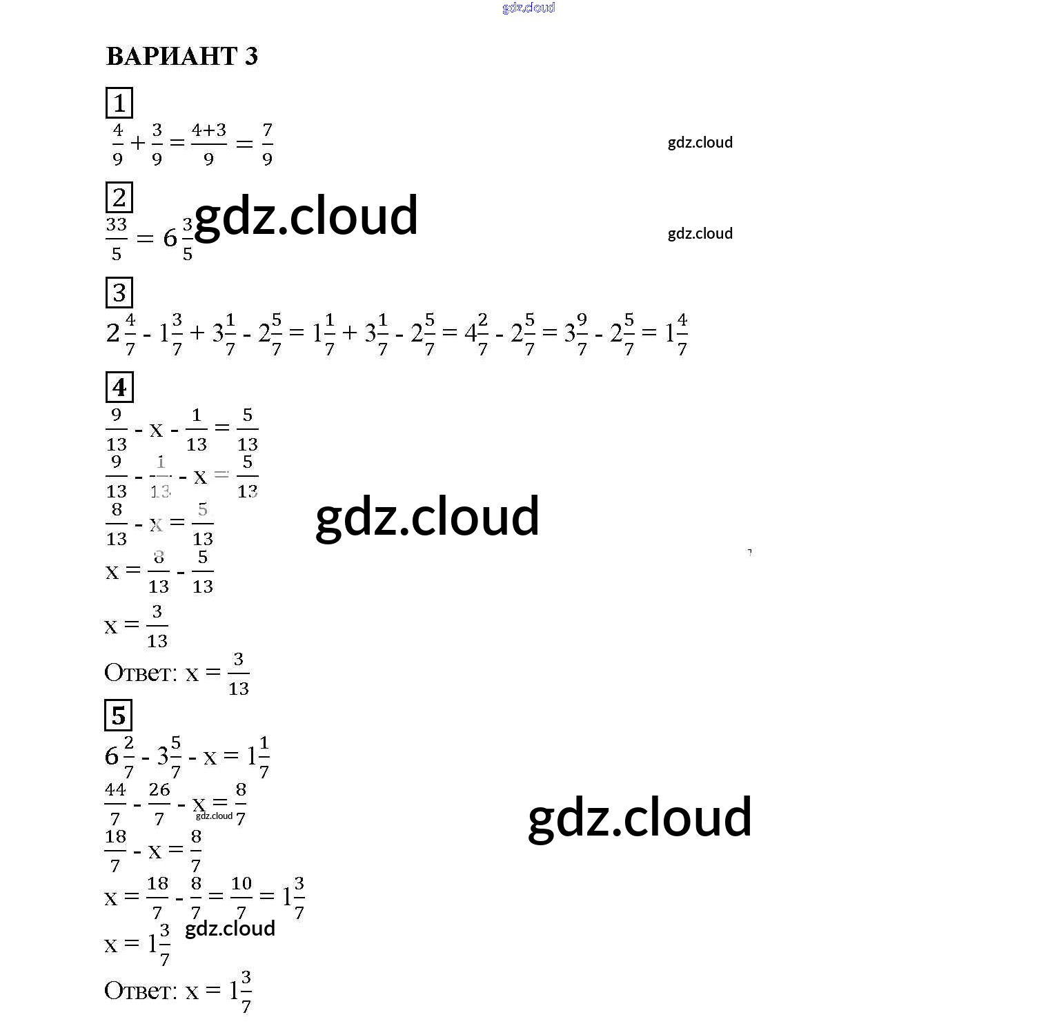 КР №8. Сложение и вычитание дробей с одинаковыми знаменателями. Деление и дроби Ответы к Контрольным работам по Математике 5 класс Дидактические материалы Попов УМК Экзамен