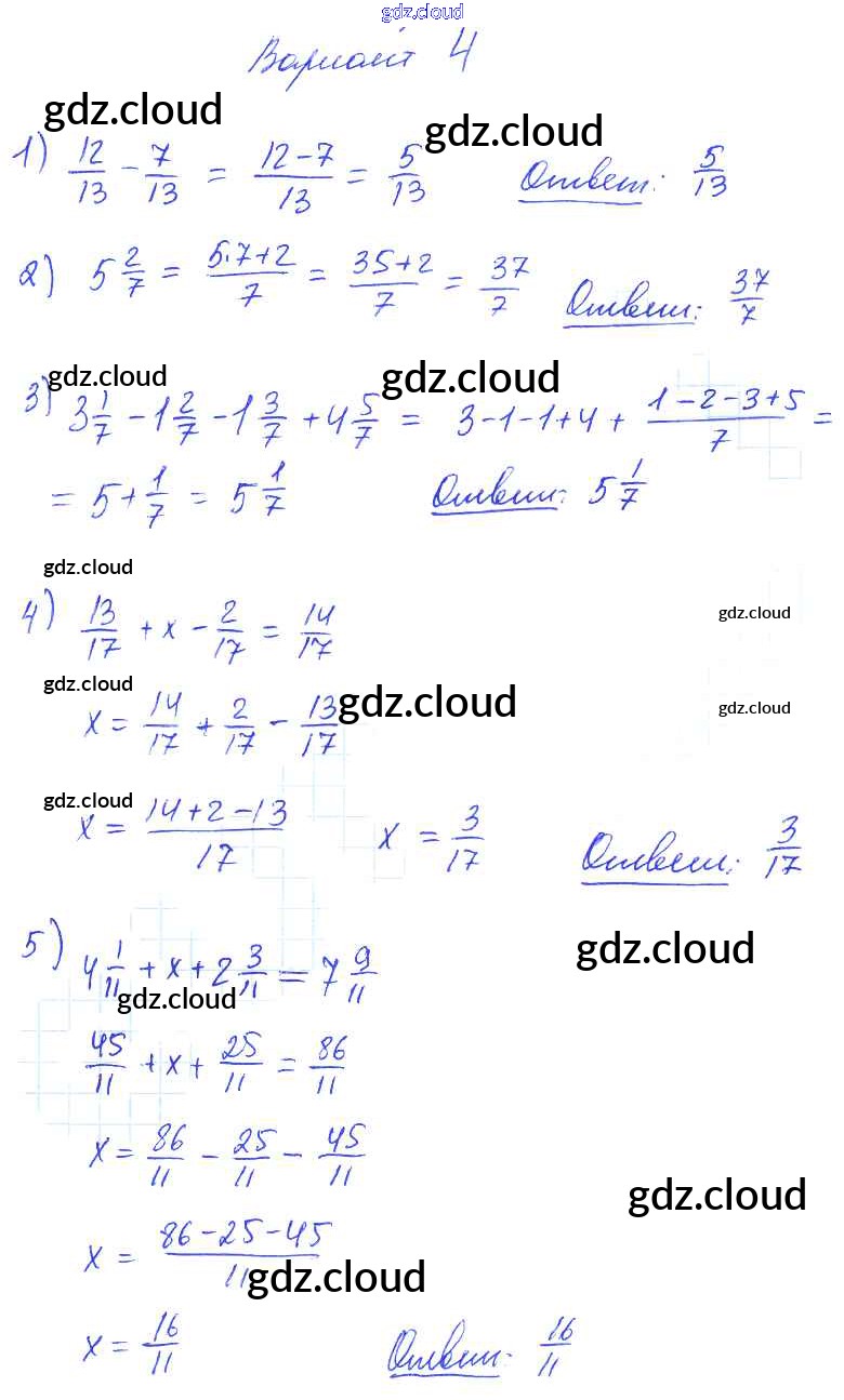 КР №8. Сложение и вычитание дробей с одинаковыми знаменателями. Деление и дроби Ответы к Контрольным работам по Математике 5 класс Дидактические материалы Попов УМК Экзамен