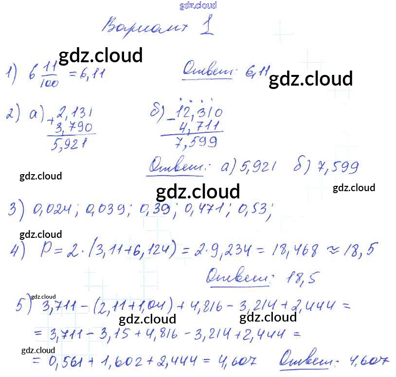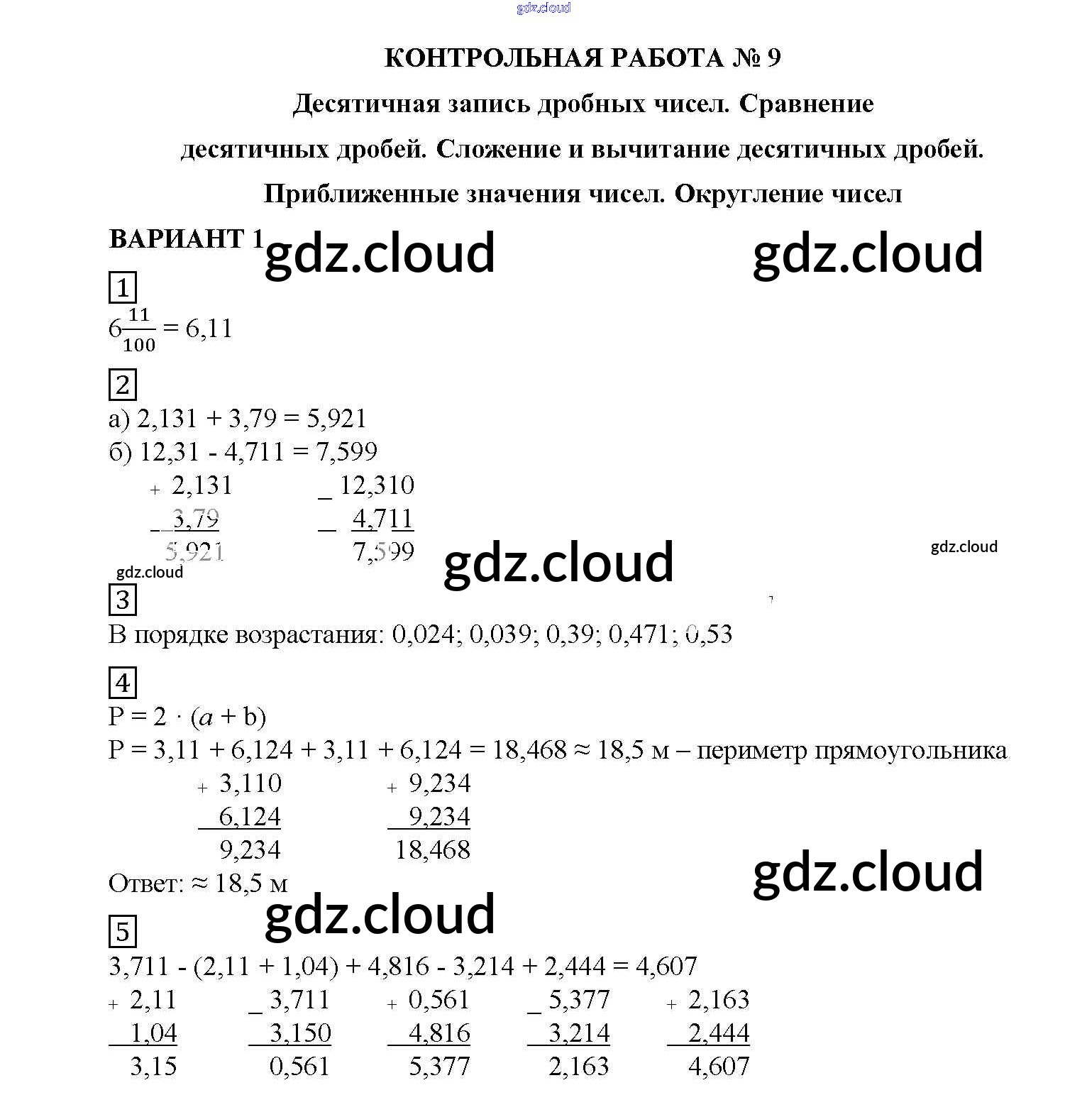 КР №9. Десятичная запись дробных чисел. Сравнение десятичных дробей Ответы к Контрольным работам по Математике 5 класс Дидактические материалы Попов УМК Экзамен