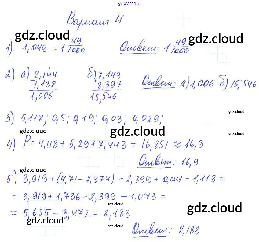 КР №9. Десятичная запись дробных чисел. Сравнение десятичных дробей Ответы к Контрольным работам по Математике 5 класс Дидактические материалы Попов УМК Экзамен