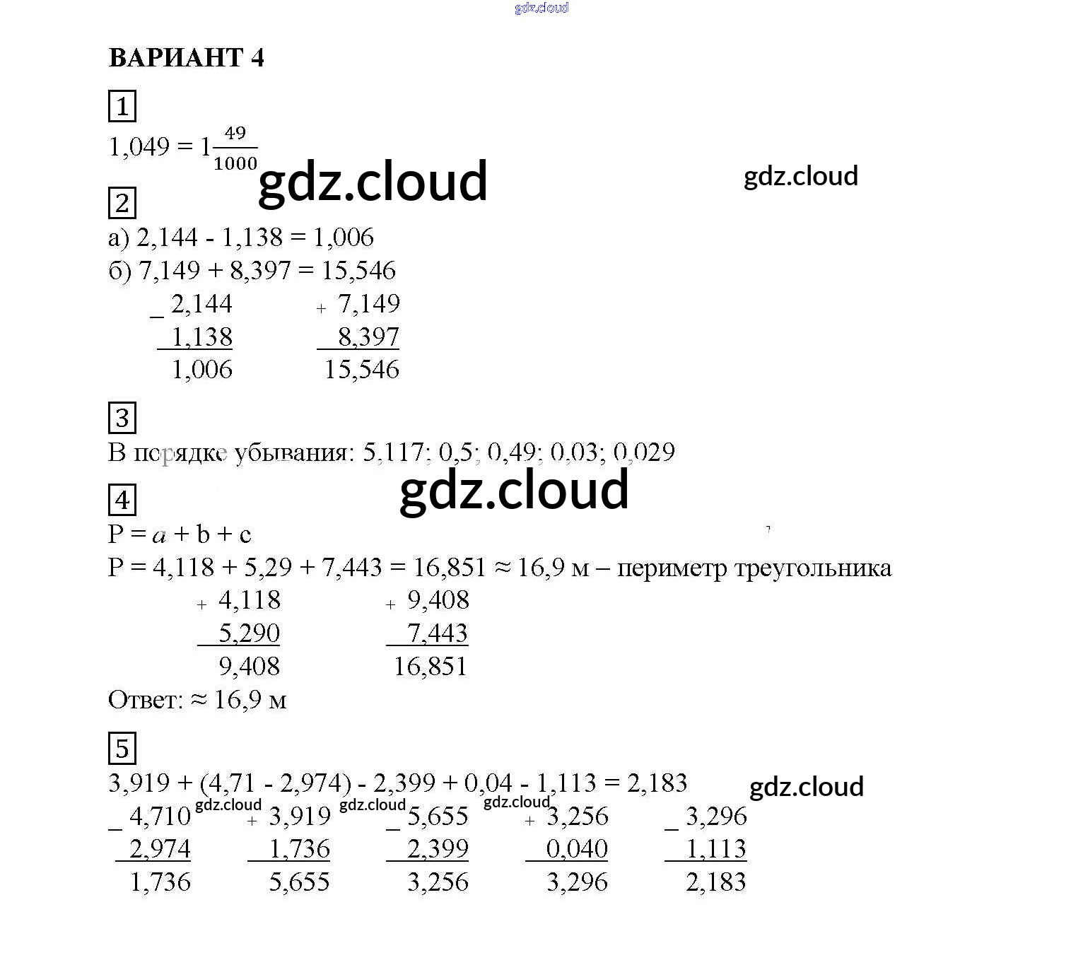 Ответ на задание вариант №4 Дидактические материалы Математика за 5 (пятый) класс Попов УМК 2017