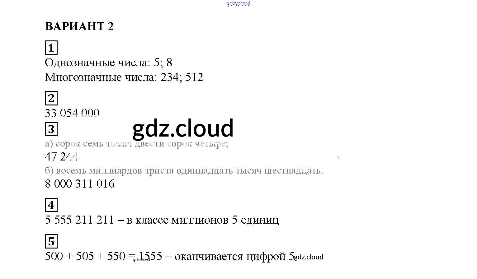 СР №1. Обозначение натуральных чисел Ответы к Самостоятельным работам по Математике 5 класс Дидактические материалы Попов УМК Экзамен