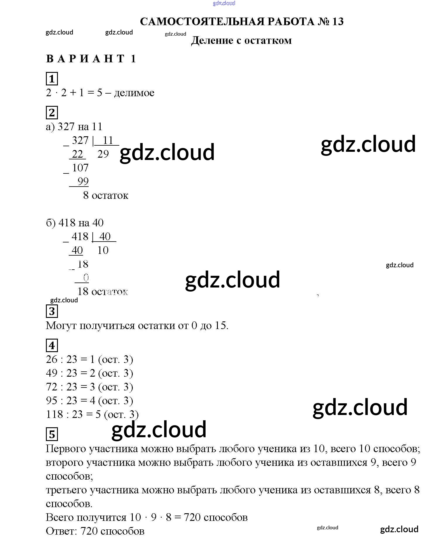 СР №13. Деление с остатком Ответы к Самостоятельным работам по Математике 5 класс Дидактические материалы Попов УМК Экзамен