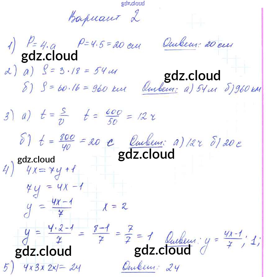 СР №17. Формулы Ответы к Самостоятельным работам по Математике 5 класс Дидактические материалы Попов УМК Экзамен