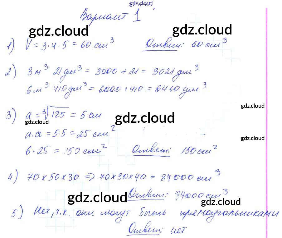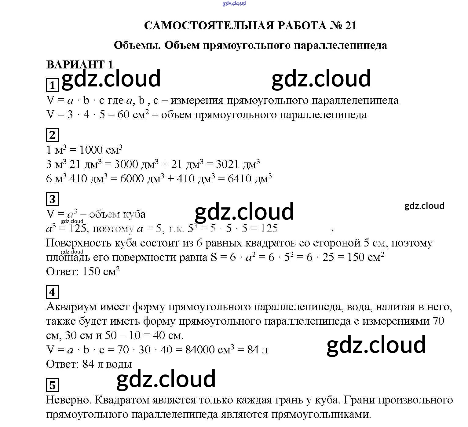СР №21. Объемы. Объем прямоугольного параллелепипеда Ответы к Самостоятельным работам по Математике 5 класс Дидактические материалы Попов УМК Экзамен