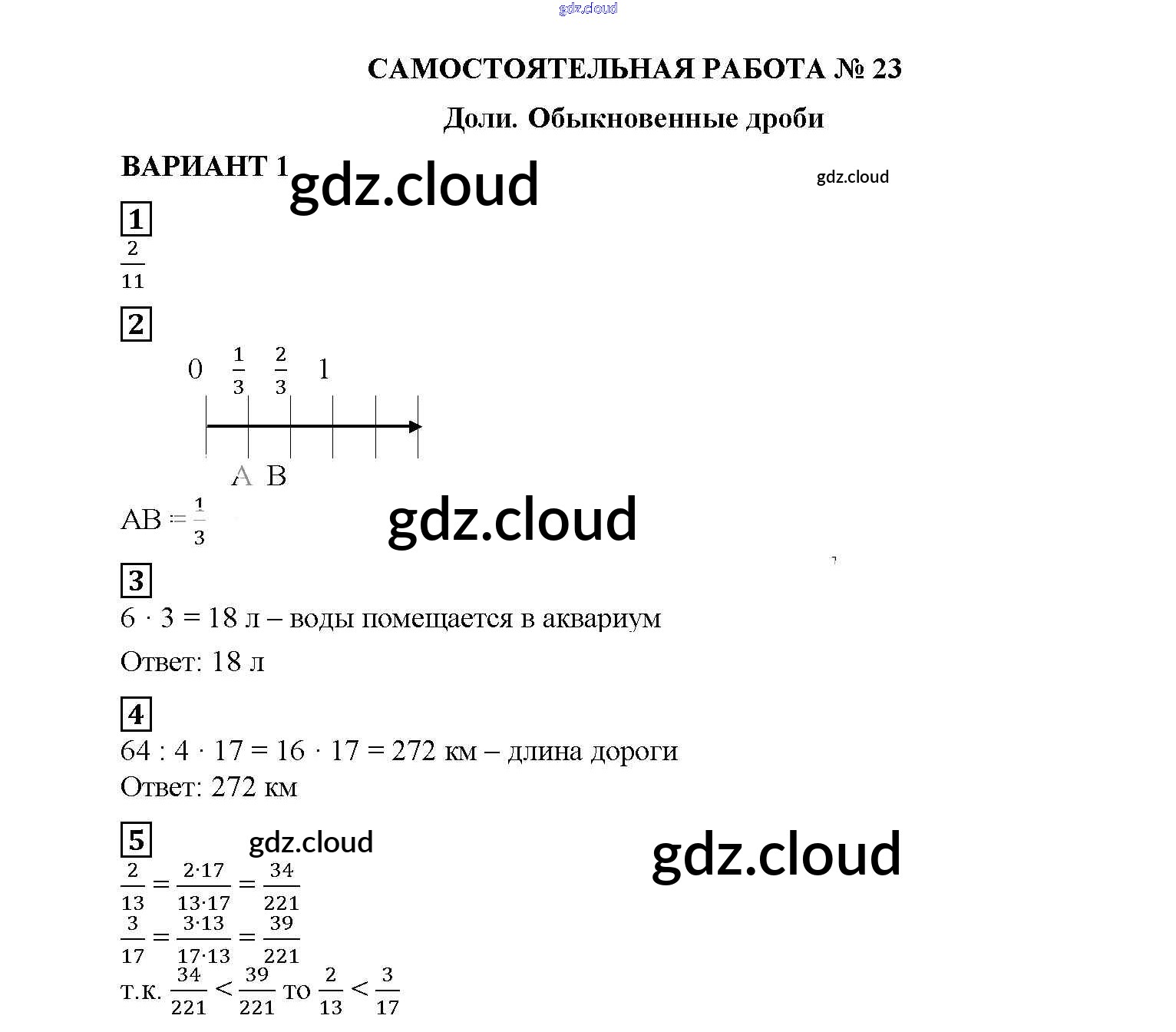 СР №23. Доли. Обыкновенные дроби Ответы к Самостоятельным работам по Математике 5 класс Дидактические материалы Попов УМК Экзамен