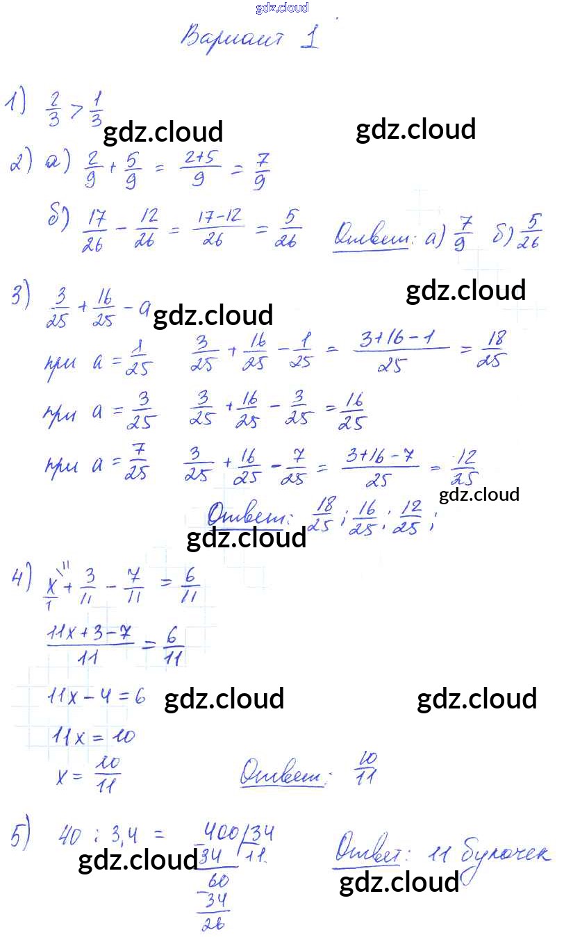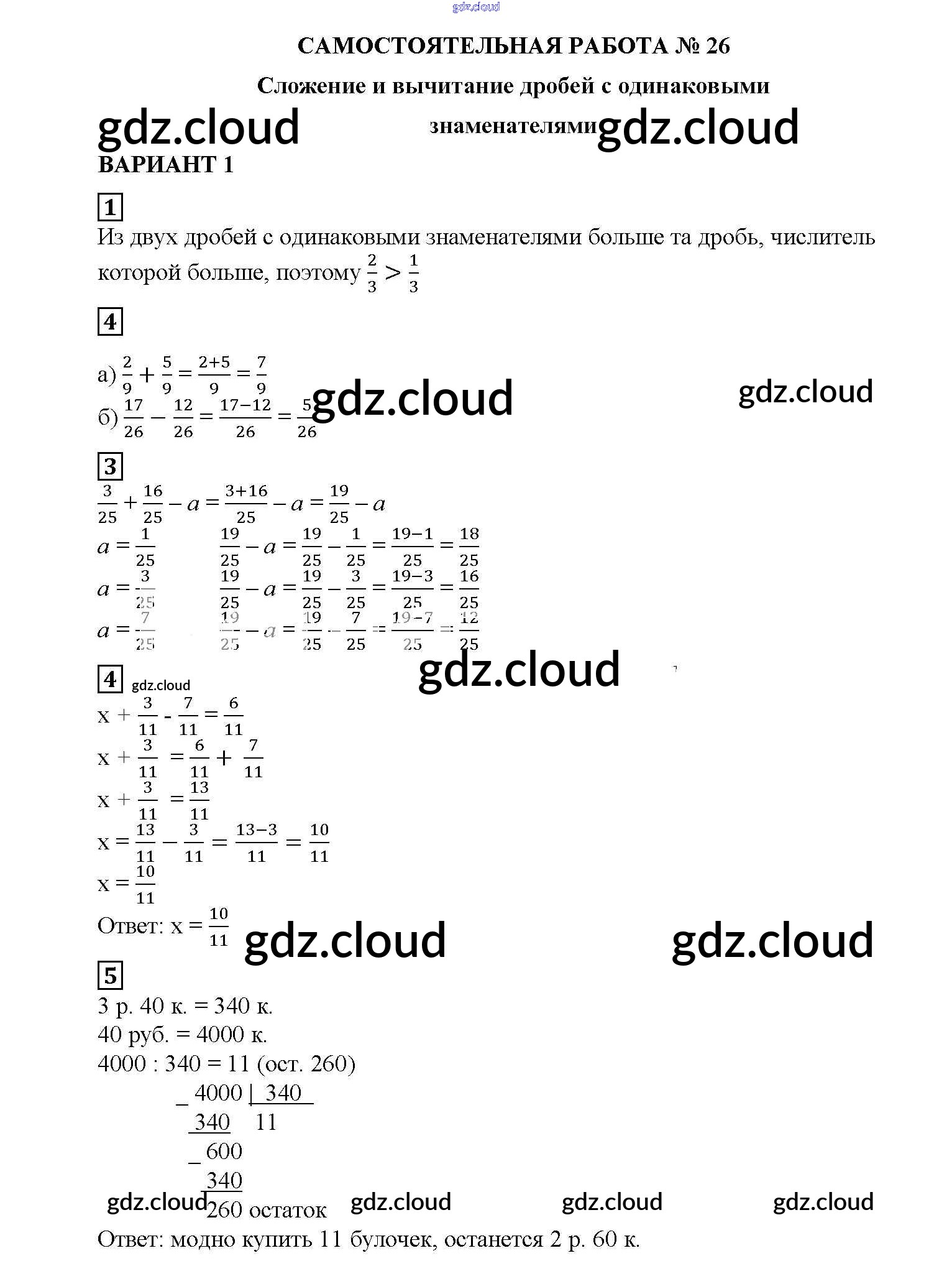 СР №26. Сложение и вычитание дробей с одинаковыми знаменателями Ответы к Самостоятельным работам по Математике 5 класс Дидактические материалы Попов УМК Экзамен