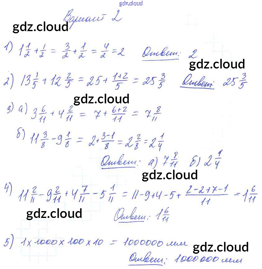 СР №29. Сложение и вычитание смешанных чисел Ответы к Самостоятельным работам по Математике 5 класс Дидактические материалы Попов УМК Экзамен