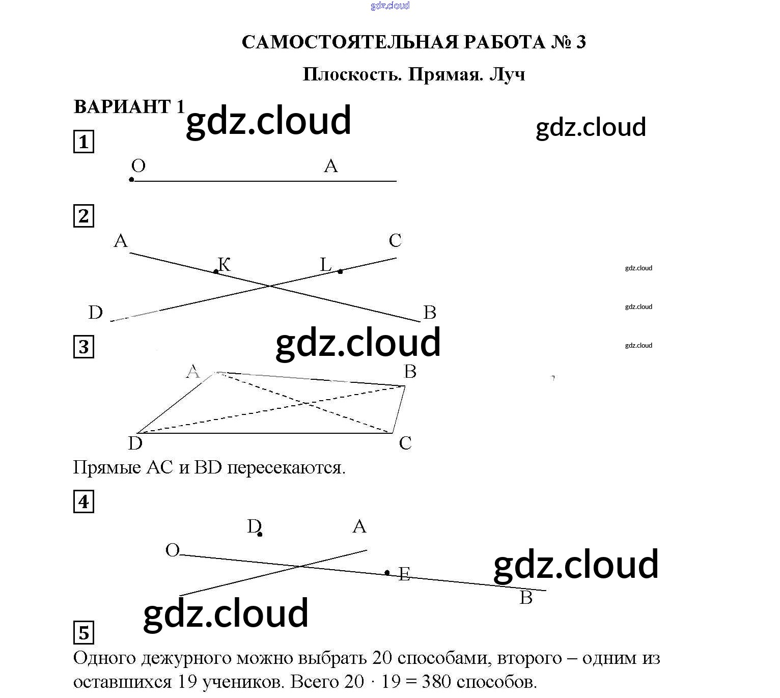 СР №3. Плоскость. Прямая. Луч Ответы к Самостоятельным работам по Математике 5 класс Дидактические материалы Попов УМК Экзамен