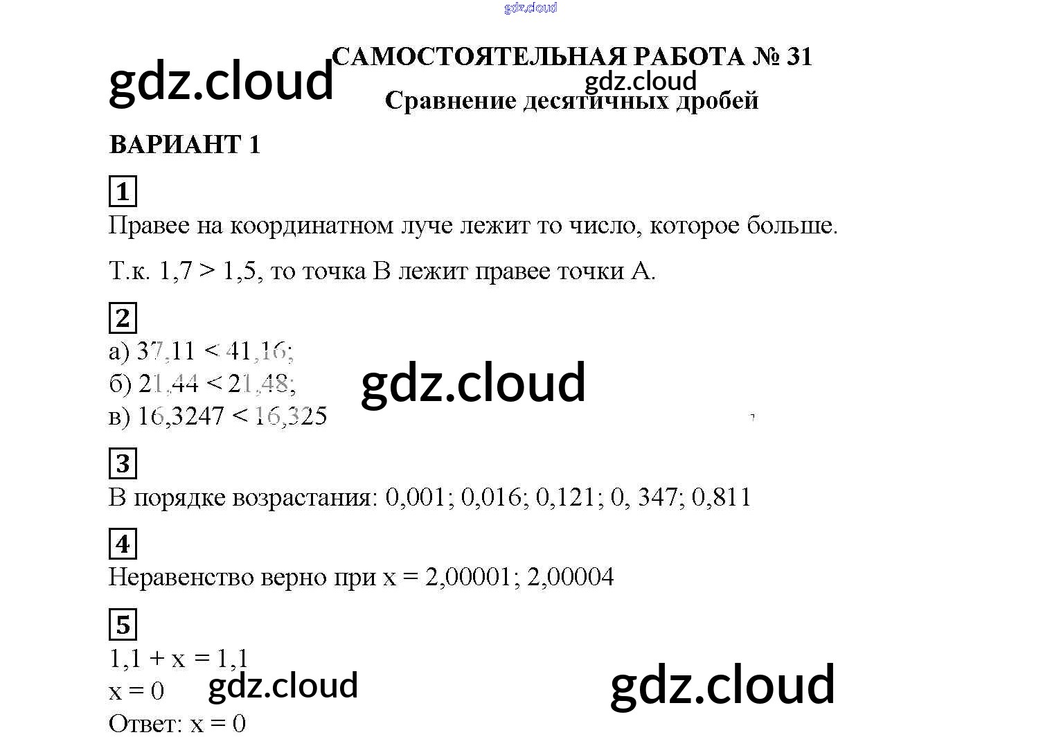 СР №31. Сравнение десятичных дробей Ответы к Самостоятельным работам по Математике 5 класс Дидактические материалы Попов УМК Экзамен