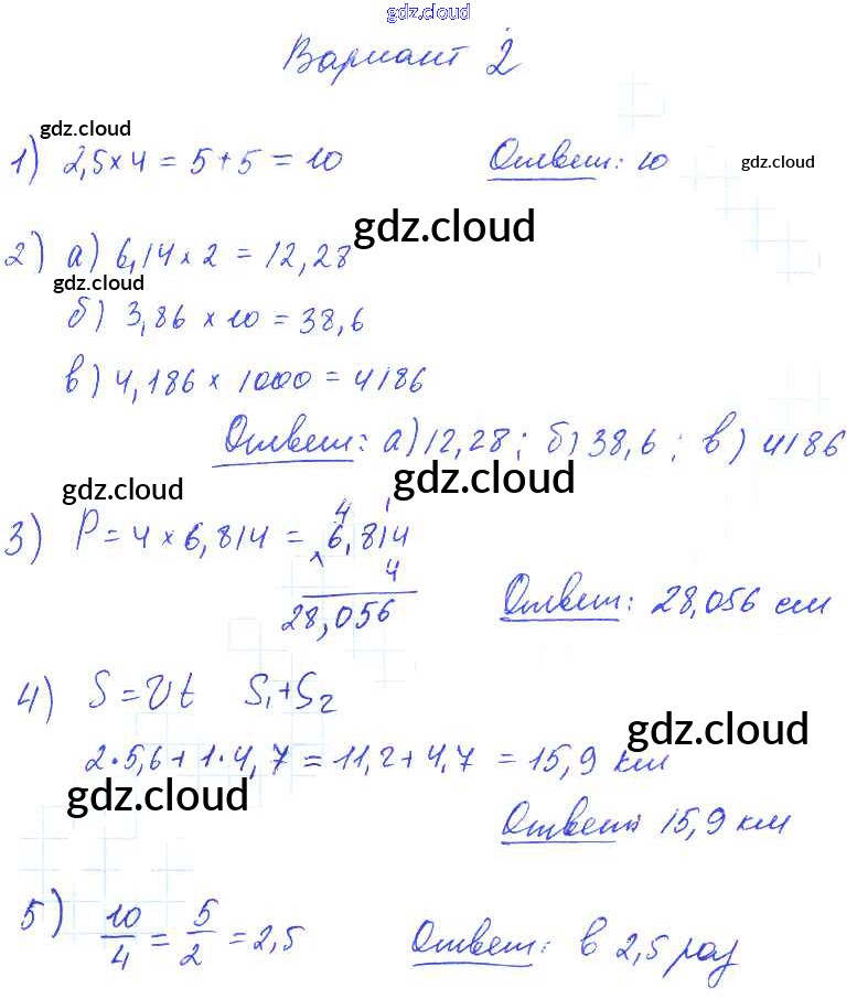 Ответ на задание вариант №2 Дидактические материалы Математика за 5 (пятый) класс Попов УМК 2017
