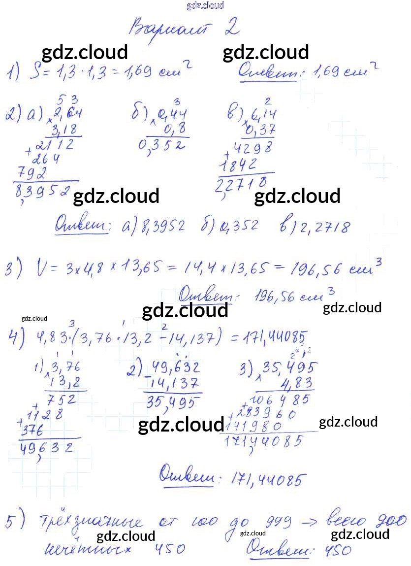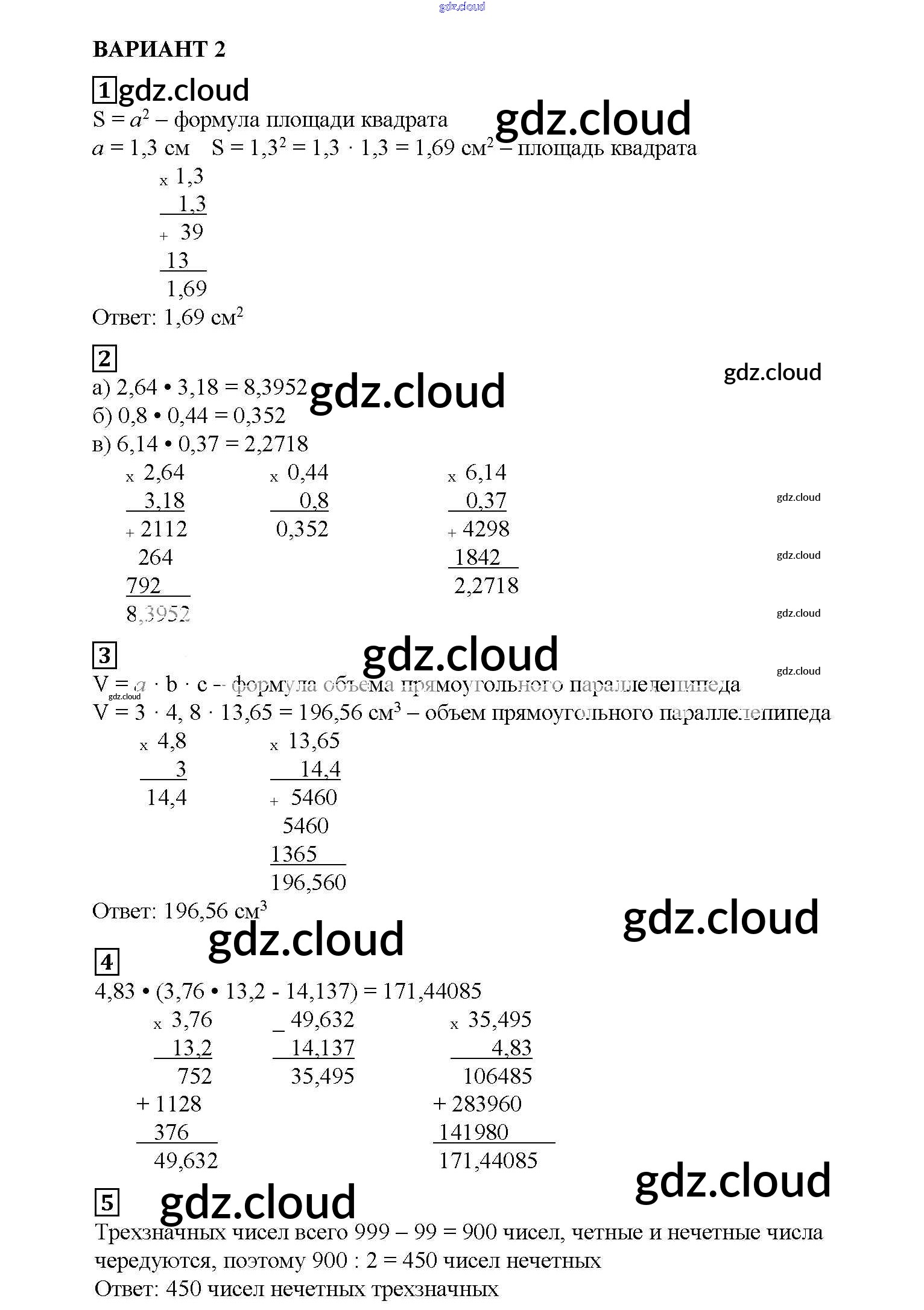 Ответ на задание вариант №2 Дидактические материалы Математика за 5 (пятый) класс Попов УМК 2017