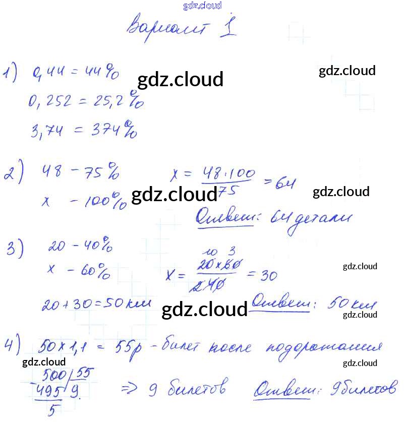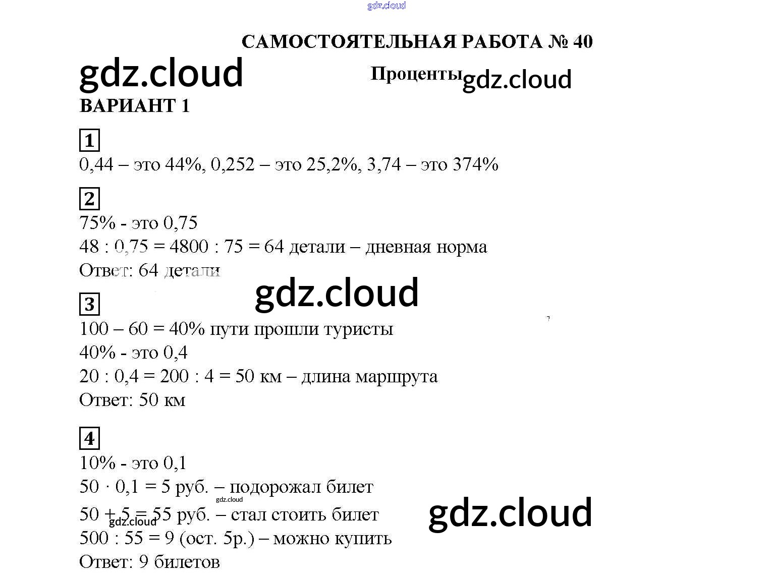 СР №40. Проценты Ответы к Самостоятельным работам по Математике 5 класс Дидактические материалы Попов УМК Экзамен