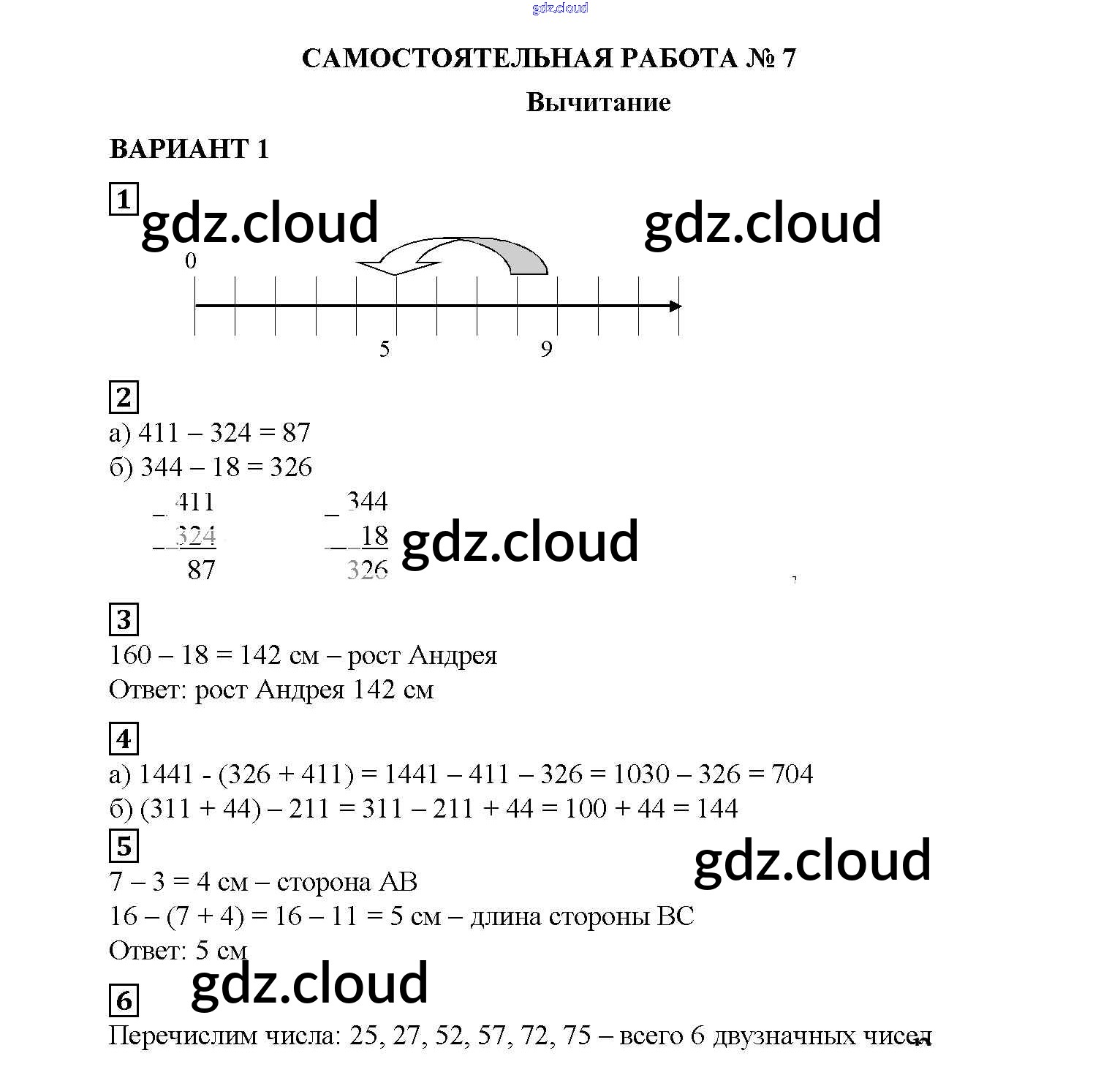 СР №7. Вычитание Ответы к Самостоятельным работам по Математике 5 класс Дидактические материалы Попов УМК Экзамен