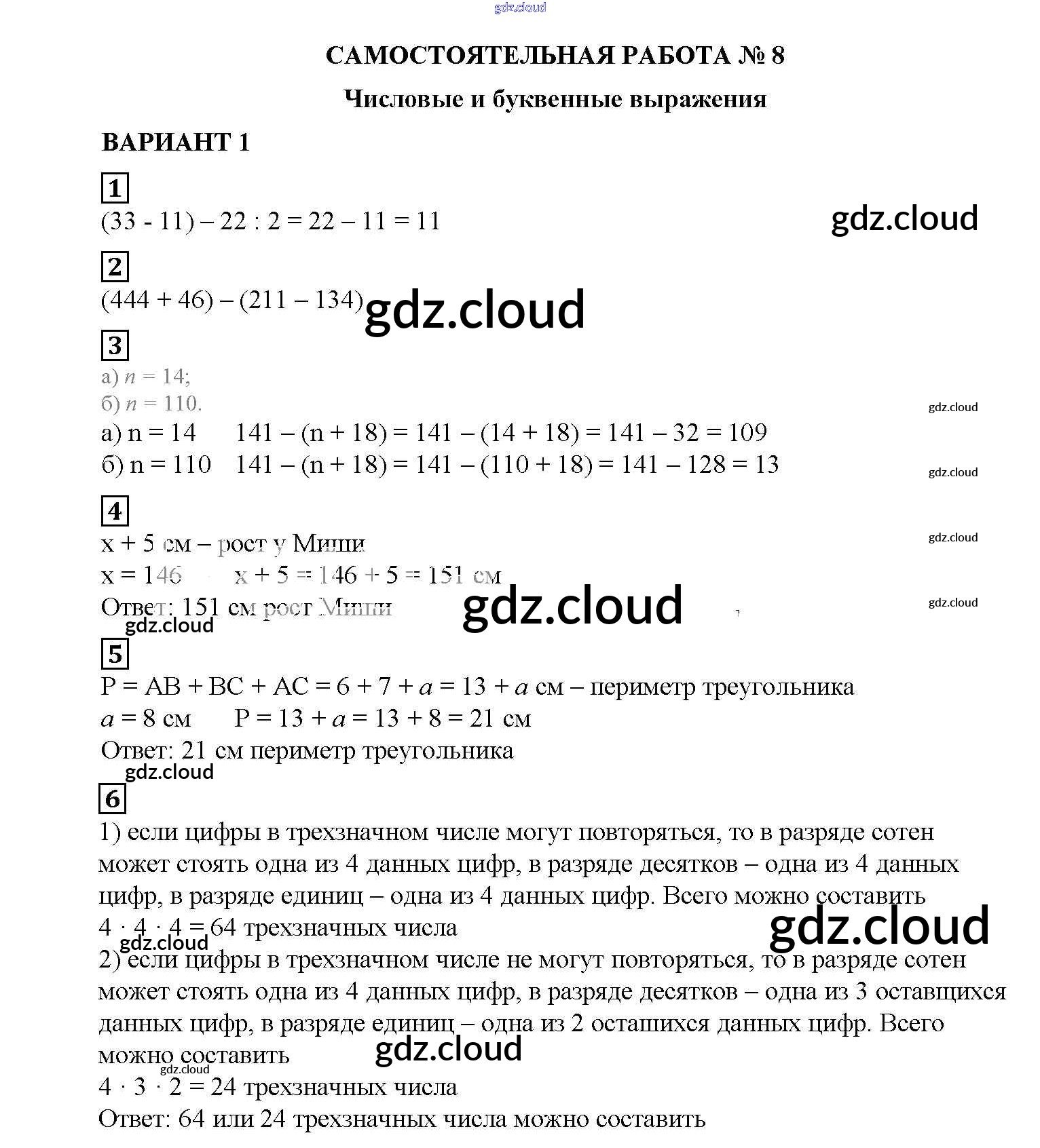 СР №8. Числовые и буквенные выражения Ответы к Самостоятельным работам по Математике 5 класс Дидактические материалы Попов УМК Экзамен