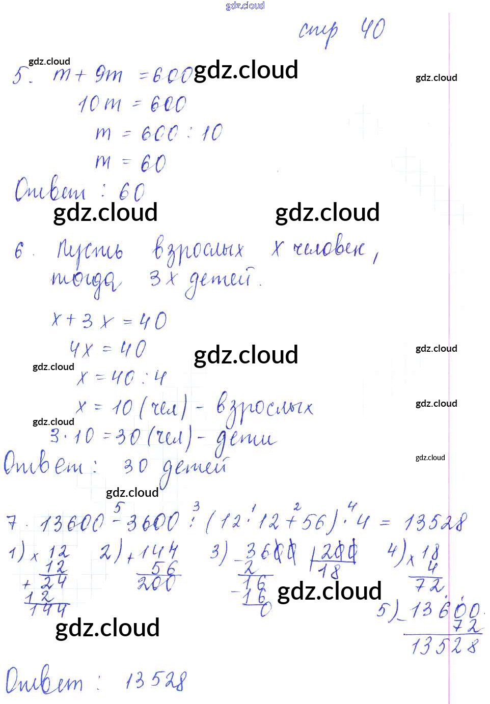 Ответ на задание стр.40 Рабочая тетрадь Математика за 5 (пятый) класс Рудницкая УМК 2013 Часть 1, 2 ФГОС онлайн и без номера телефона.