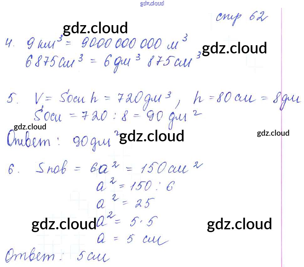 Ответ на задание стр.62 Рабочая тетрадь Математика за 5 (пятый) класс Рудницкая УМК 2013 Часть 1, 2 ФГОС онлайн и без номера телефона.