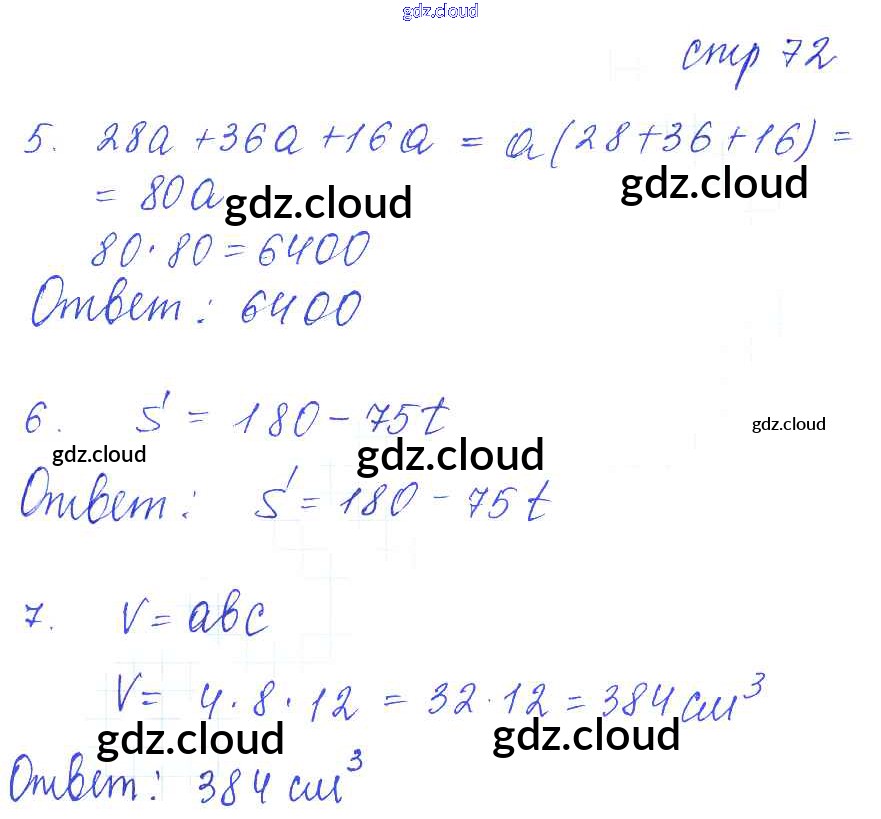 Ответ на задание стр.72 Рабочая тетрадь Математика за 5 (пятый) класс Рудницкая УМК 2013 Часть 1, 2 ФГОС онлайн и без номера телефона.