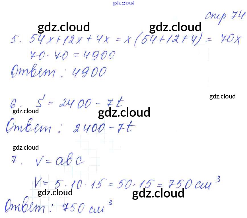 Ответ на задание стр.74 Рабочая тетрадь Математика за 5 (пятый) класс Рудницкая УМК 2013 Часть 1, 2 ФГОС онлайн и без номера телефона.