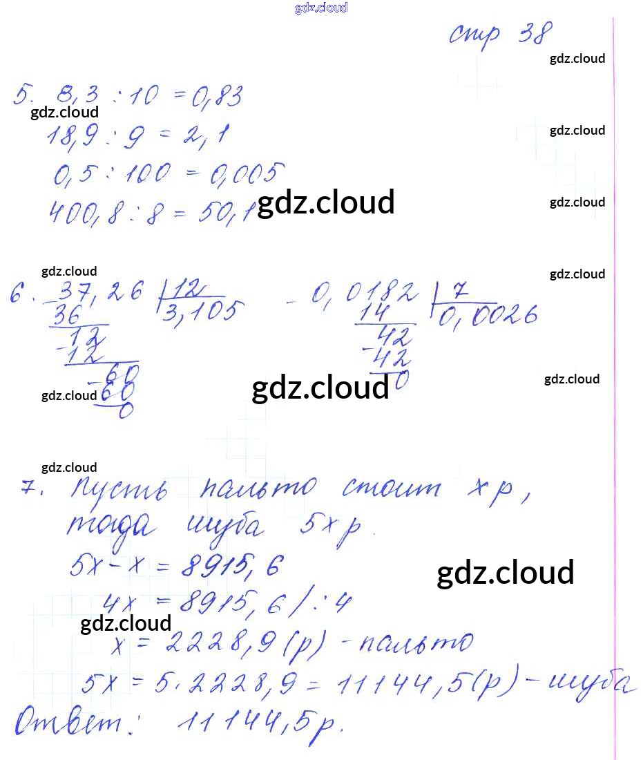 Ответ на задание стр.38 Рабочая тетрадь Математика за 5 (пятый) класс Рудницкая УМК 2013 Часть 1, 2 ФГОС онлайн и без номера телефона.
