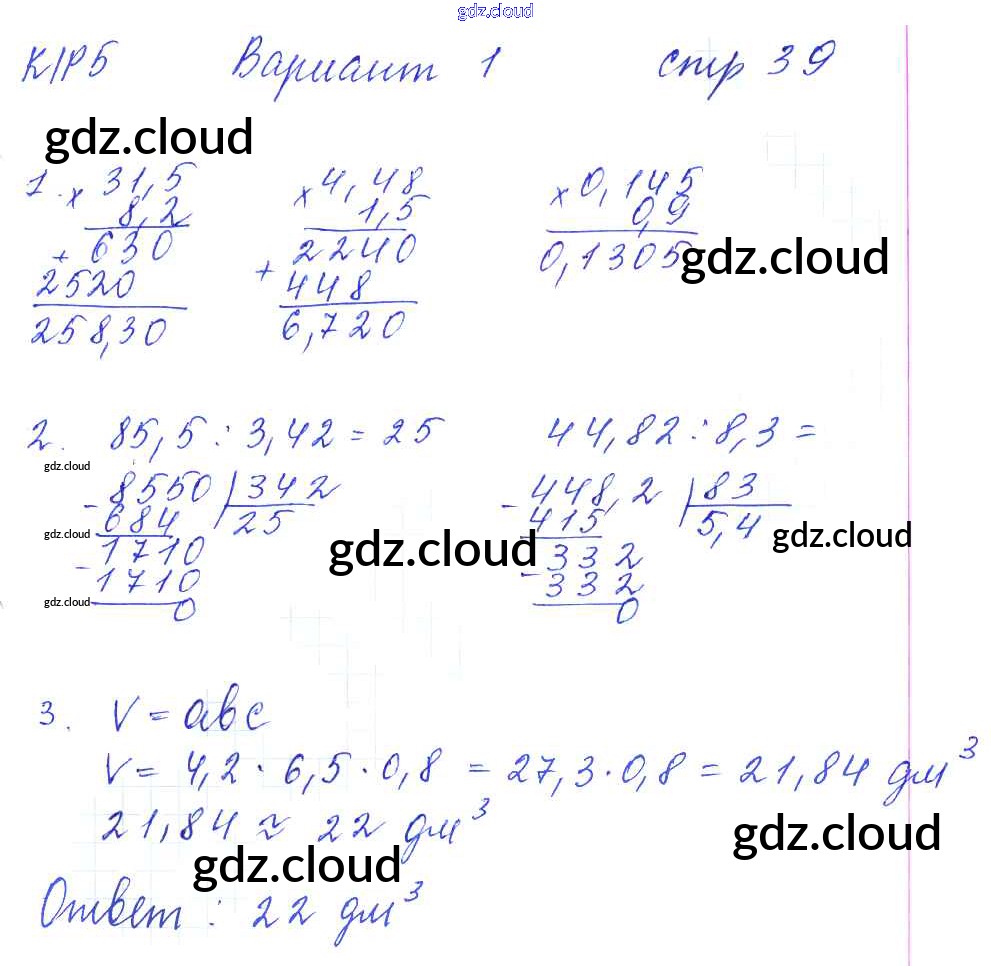 Ответ на задание стр.39 Рабочая тетрадь Математика за 5 (пятый) класс Рудницкая УМК 2013 Часть 1, 2 ФГОС онлайн и без номера телефона.