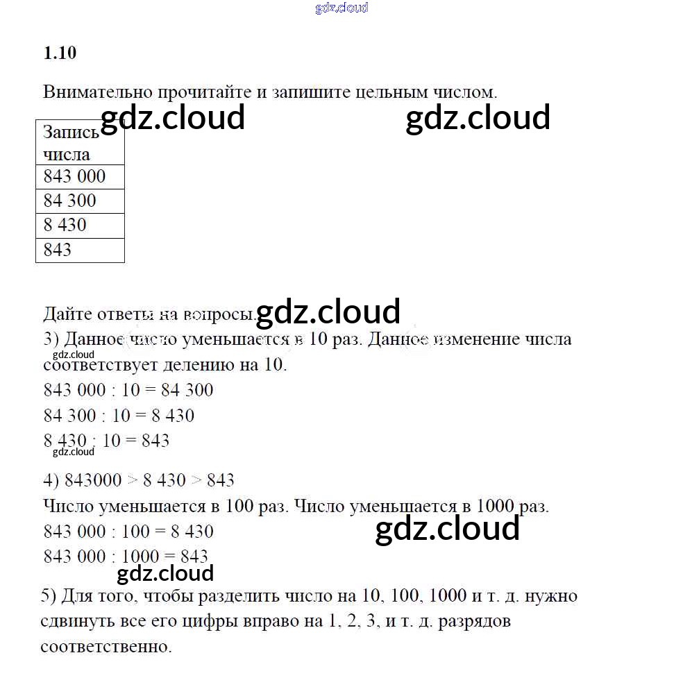 Ответ на задание 1.10 Рабочая тетрадь Математика за 5 (пятый) класс Зубарева УМК 2014 Часть 1, 2