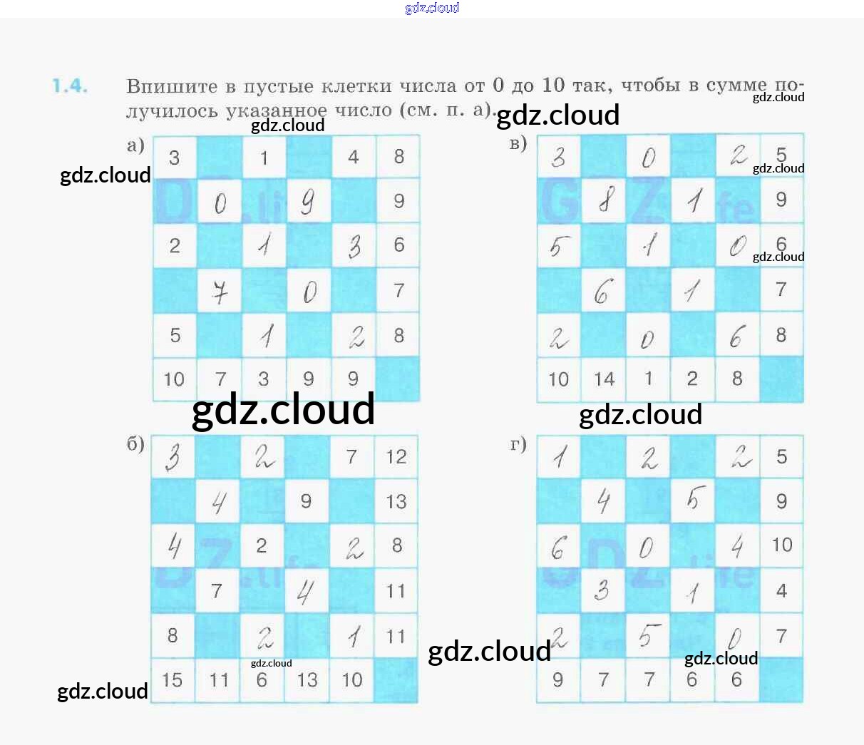 Ответ на задание 1.4 Рабочая тетрадь Математика за 5 (пятый) класс Зубарева УМК 2014 Часть 1, 2