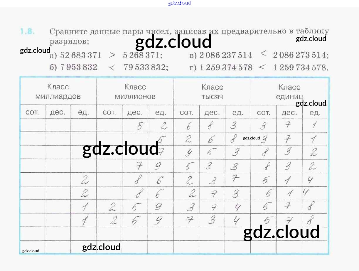 Ответ на задание 1.8 Рабочая тетрадь Математика за 5 (пятый) класс Зубарева УМК 2014 Часть 1, 2